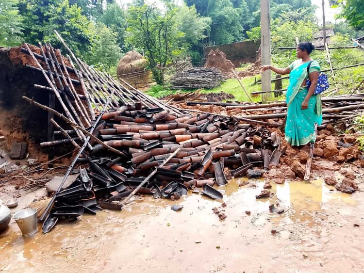 खूंटी. जिले में लगातार बारिश का कहर जारी है. लगातार बारिश के कारण सोमवार को मारंगहादा थाना क्षेत्र की डाड़ीगुटू पंचायत अंतर्गत बेलागड़ा गांव में एक खपरैल घर ढह गया. जिसके मलबे में दबने से एक वृद्धा की मौत हो गयी. मृतक की पहचान 60 वर्षीय हन्ना टूटी के रूप में की गयी है. जानकारी के अनुसार घटना रात लगभग 11 बजे की है. तब घर में हन्ना टूटी और उसका पुत्र बेलोम टूटी सो रहे थे. इसी क्रम में घर की दीवार ढह गयी. जिसमें हन्ना टूटी दब गयी. इससे उसकी मौके पर ही मौत हो गयी. दुर्घटना में बेटा बाल-बाल बच गया. घटना की जानकारी मिलने पर मंगलवार की सुबह मुखिया हन्ना टूटी गांव पहुंची. उन्होंने नुकसान का जायजा लिया. वहीं पीड़ित परिवार को ढांढस बंधाया. मुखिया ने उन्हें सहयोग करने का आश्वासन दिया है. वहीं मदद के स्वरूप पीड़ित परिवार को अनाज दिया गया.