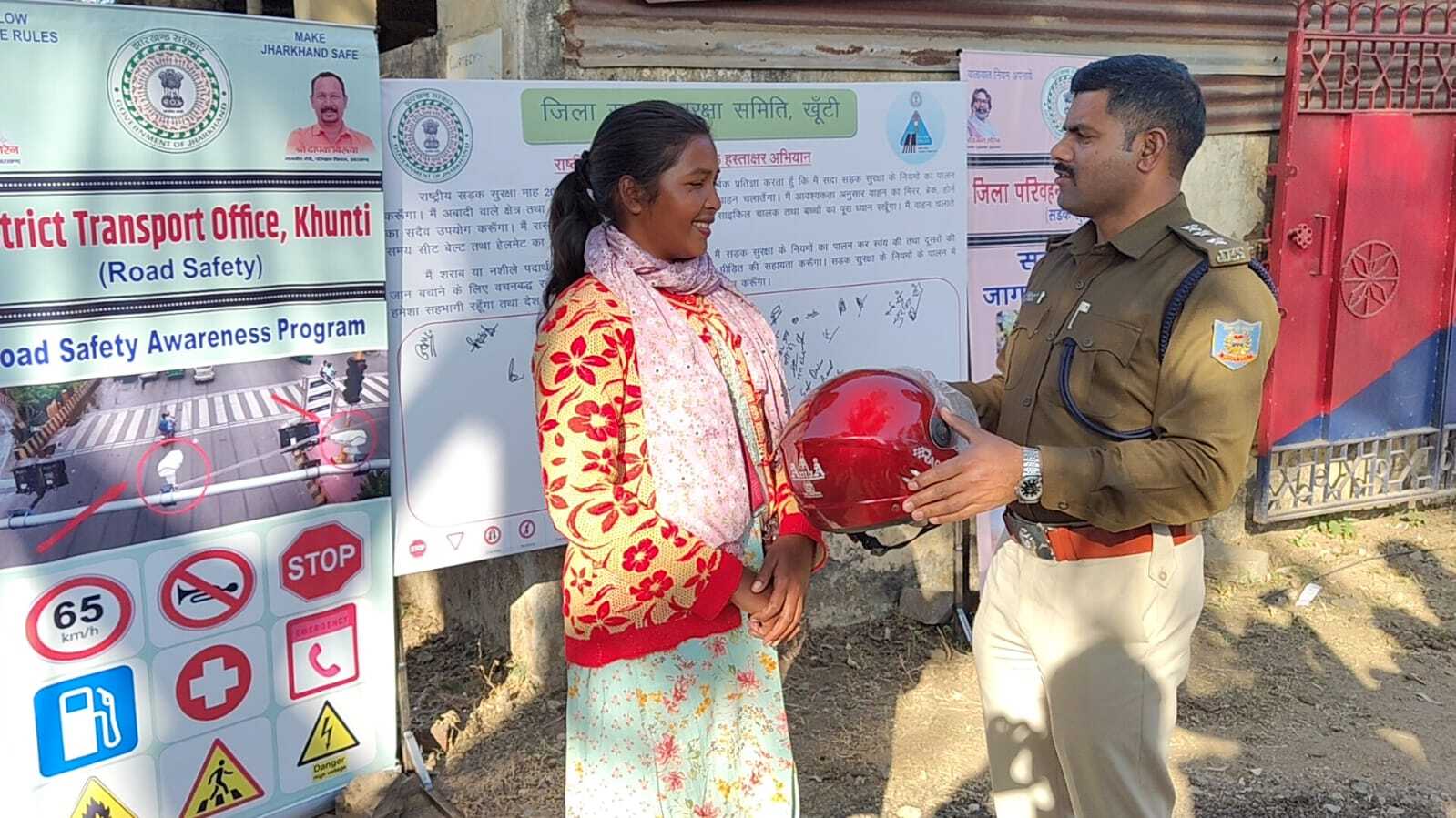 प्रतिनिधि, खूंटी सड़क सुरक्षा माह के तहत बुधवार को शहरी क्षेत्र में एसडीपीओ वरुण रजक और जिला सड़क सुरक्षा प्रबंधक निशांत रौशन की ओर से सड़क जागरुकता कार्यक्रम का आयोजन किया गया. इसके तहत खूंटी थाना में यातायात नियमों का उल्लंघन करने वालों को पकड़कर उन्हें यातायात नियमों की जानकारी दी गयी. इस दौरान बिना हेलमेट पहने दो पहिया वाहन चलाने वालों को एसडीपीओ वरुण रजक ने हेलमेट प्रदान किया और माला पहनाया. उन्होंने फूल देकर यातायात नियमों का पालन करने का निर्देश दिया. उन्होंने कहा कि राष्ट्रीय सड़क सुरक्षा माह के अवसर पर लोगों को जागरूक करने के लिए हस्ताक्षर अभियान, हेलमेट वितरण और अन्य कई जागरुकता कार्यक्रम के माध्यम से लोगों को जागरूक किया जा रहा है. सड़क दुर्घटनाओं में कमी लाने के उद्देश्य से सड़क सुरक्षा के नियमों का पालन सभी के लिए आवश्यक है. उन्होंने कहा कि जिले में अक्सर सड़क दुर्घटना में लोगों की जान जा रही है. इससे बचने के लिए यातायात नियम और सड़क सुरक्षा का पालन करना जरूरी है. उन्होंने वाहन चलाते समय हेलमेट और सीट बेल्ट का उपयोग अनिवार्य रूप से करने की अपील की. इस दौरान यातायात नियमों का पालन नहीं करने वालों से जुर्माना भी लिया गया. इसमें कुल 23 हजार रुपये का चालान काटा गया. मौके पर संदीप हेमरोम, योगेश कुमार और अन्य लोग उपस्थित थे.
