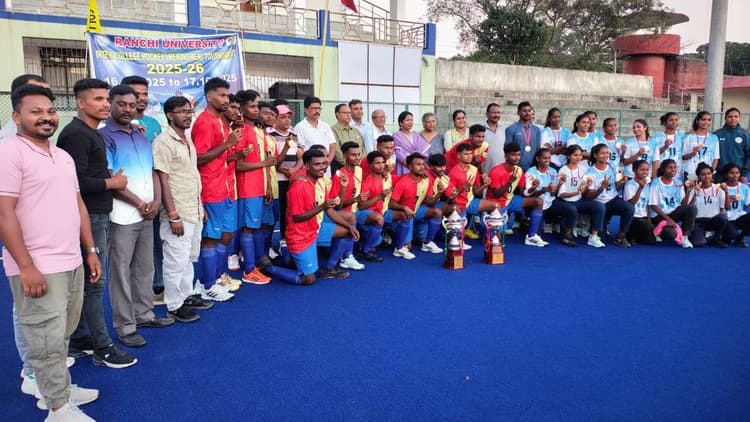 रांची विश्वविद्यालय अंतर्गत अंतर महाविद्यालय हॉकी प्रतियोगिता में बिरसा कॉलेज खूंटी चैंपियन बना. प्रतियोगिता के महिला और पुरुष दोनों वर्ग में बिरसा कॉलेज की टीम विजेता रही. प्रतियोगिता में लगातार पांचवीं बार बिरसा कॉलेज खूंटी की टीम ने चैंपियन बनने का रिकॉर्ड भी कायम किया है. बिरसा कॉलेज एस्ट्रोटर्फ हॉकी स्टेडियम में आयोजित दो दिवसीय प्रतियोगिता में शुक्रवार को खेले गये फाइनल मैच के पुरुष वर्ग में पेनाल्टी शूटआउट में खूंटी बिरसा कॉलेज की टीम ने एसएस मेमोरियल कॉलेज रांची की टीम को 2-0 से पराजित किया. वहीं महिला वर्ग में बिरसा कॉलेज की टीम ने सिमडेगा कॉलेज की टीम को 2-1 गोल से पराजित किया. समापन समारोह के मुख्य अतिथि रांची विश्वविद्यालय के डीएसडब्ल्यू डॉ सुदेश कुमार साहू ने विजेता और उपविजेता टीम को पुरस्कृत किया. उन्होंने कहा कि सभी खिलाड़ियों ने खेल भावना का परिचय देते हुए उत्कृष्ट खेल का प्रदर्शन किया है. उन्होंने खेल के क्षेत्र में अपने करियर को संवारने के लिए महत्वपूर्ण टिप्स खिलाड़ियों को दिये. वहीं आयोजन को सफल बनाने के लिए उन्होंने बिरसा कॉलेज की सराहना की. बिरसा कॉलेज के प्रभारी प्राचार्य डॉ सीके भगत ने सभी टीमों के खिलाड़ियों को बधाई दी. कहा कि खूंटी जिले में खेल प्रतिभाओं की कमी नहीं है. समय-समय पर यहां के खिलाड़ी अपने प्रदर्शन से देश-विदेश में नाम कमा रहे हैं. मौके पर खेल प्रभारी राजकुमार गुप्ता, डॉ पुष्पा सुरीन, जया भारती कुजूर, डॉ अभिषेक कुमार, वासुदेव हस्सा, जय कच्छप, तारीफ लुगुन, डॉ सी मिंज, दशरथ महतो, प्रकाश प्रमाणिक, प्रकाश टूटी, विनोद प्रजापति सहित अन्य उपस्थित थे.डिस्क्लेमर: यह प्रभात खबर समाचार पत्र की ऑटोमेटेड न्यूज फीड है. इसे प्रभात खबर डॉट कॉम की टीम ने संपादित नहीं किया है