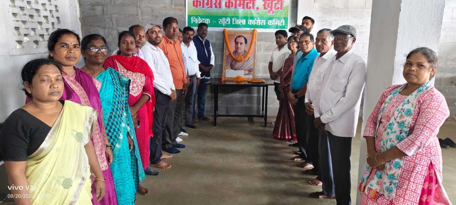 खूंटी. सांसद कालीचरण मुंडा के आवासीय कार्यालय परिसर में बुधवार को जिला कांग्रेस कमेटी द्वारा स्वर्गीय राजीव गांधी की जयंती मनायी गयी. इस अवसर पर जिलाध्यक्ष रवि मिश्र की अध्यक्षता में स्वर्गीय राजीव गांधी के चित्र पर पुष्प अर्पित कर कांग्रेसियों ने उन्हें याद किया. कार्यक्रम में कांग्रेस के कार्यकर्ताओं ने उनके आदर्शों पर चलने का संकल्प लिया. जिला अध्यक्ष रवि मिश्रा ने कहा कि आधुनिक भारत के निर्माता भारत रत्न स्वर्गीय राजीव गांधी का देश की तरक्की में बहुत अहम भूमिका रही है. उन्होंने देशवासियों ताकत दी. उनके बताये गये रास्ते पर चल कर देश की प्रगति में अपना योगदान देने का संकल्प लेना है. ताकि देश निरंतर विकास की राह पर बढ़ता रहे. मौके पर प्रदेश सचिव पीटर मुंडू, पूर्व जिला अध्यक्ष रामकृष्ण चौधरी, आदिवासी कांग्रेस के प्रदेश उपाध्यक्ष विलसन तोपनो, सहकारिता प्रकोष्ठ के महासचिव नईमुद्दीन खा, मुरहू प्रखंड अध्यक्ष अजय कुमार साहू, जेम्स तोपनो, पॉल भेंगरा, जुनैद अंसारी, बंदू गझूं, सुशील पुर्ती, शांता खाखा, हेलेन तिडू, सुषमा भेंगरा, ऋतुराज झा, मगरीता खेस, अनीता नाग, सुसारी पुर्ती, सुंदरमनी हंस, अलेक्शियूस भेंगरा, आदित्य गझूं आदि उपस्थित थे.