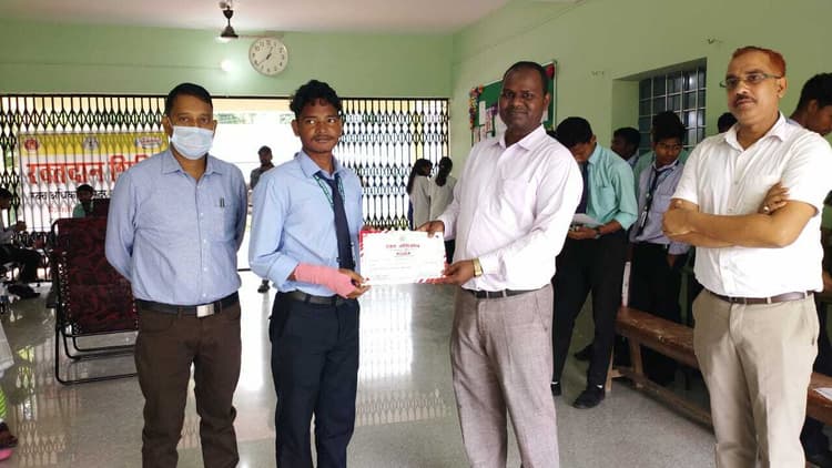 खूंटी. शहर के लोयोला इंटर कॉलेज में सदर अस्पताल के ब्लड बैंक के तत्वावधान में सोमवार को रक्तदान शिविर का आयोजन किया गया. शिविर में कुल 23 यूनिट रक्त संग्रहित किया. शिविर में सबसे पहले प्राचार्य फादर विमल मिंज ने रक्तदान कर शिविर का उद्घाटन किया. इस अवसर पर डीएस डॉ आनंद उरांव ने विद्यार्थियों का हौसला बढ़ाया. उन्होंने कहा कि जिले के थैलेसीमिया, सिकल सेल एनीमिया और सदर अस्पताल में इलाजरत मरीजों के लिए शिविर का आयोजन किया जा रहा है. शिविर में रक्तदान करने वालों में िशवम स्वांसी, सोनू ओड़ेया, जॉनसन कंडुलना, सुजीत होरो, सूरज पहान, मुकेश डुंगडुंग, अनुरंजन नाग, मुन्ना राम नाग, अनमोल कुमार, अंकित केरकेट्टा, रोशन कंडुलना, मो सैफ अख्तर, आयुष कुमार यादव, लौंग मुंडा, अभिजीत मिंज, प्रदीप टूटी, सत्य प्रतीक भेंगरा, अविनाश मुंडा, राजकुमार सिंह, विशाल कुमार, रूपेश कुमार, विक्रांत साहू शामिल थे. डीएस डॉ आनंद उरांव और प्राचार्य फादर विमल मिंज ने रक्तदान करने वाले शिक्षक और विद्यार्थियों को प्रमाण पत्र प्रदान किया. आयोजन को सफल बनाने में सुशांत कुमार, सुजीत कुमार, सुषमा कुजूर, सुनीता देवी और लोयोला इंटर कॉलेज के शिक्षक-शिक्षिकाओं का योगदान रहा.