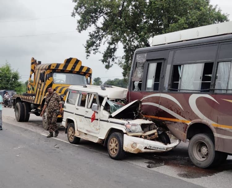 बुंडू. रांची टाटा राष्ट्रीय मार्ग 33 पर बुंडू थाना क्षेत्र के बुंडू अनुमंडल कार्यालय के समीप सोमवार की सुबह लगभग 10 बजे सड़क हादसा में चार साल की बच्ची की घटनास्थल पर ही मौत हो गयी, जबकि दो लोग गंभीर रूप से घायल हो गये. यह हादसा उस वक्त हुआ, जब टाटा रेलवे स्टेशन से रांची जा रही तूफ़ान नामक यात्री बस (जेएच05 बीएल5833) ने बुंडू अनुमंडल कार्यालय के पास अचानक ब्रेक लगा दी. इसी दौरान पीछे से आ रही बोलेरो (जेएच 10 एएन 8329) बस से टकरा गयी. टक्कर इतनी जबरदस्त थी कि बोलेरो का अगला हिस्सा पूरी तरह चकनाचूर हो गया, जबकि बस का पिछला हिस्सा भी क्षतिग्रस्त हो गया. बोलेरो में सवार सभी पांच लोग तमाड़ थाना क्षेत्र के पोड़लाही गांव के रहनेवाले थे. इस हादसे में चार वर्षीय अनमोल महतो, पिता शिशुपाल महतो (24) की मौके पर ही मौत हो गयी. वहीं शिशुपाल महतो और उनके पिता राजेंद्र महतो (60) गंभीर रूप से घायल हो गये. दोनों को पहले बुंडू अनुमंडल अस्पताल लाया गया, जहां से प्राथमिक उपचार के बाद उन्हें रांची रिम्स रेफर कर दिया गया है. बोलेरो में सवार अन्य दो लोगों को मामूली चोटें आयी है, जिन्हें प्राथमिक उपचार के बाद छुट्टी दे दी गयी. घटना के तुरंत बाद बुंडू थाना पुलिस मौके पर पहुंची और स्थानीय लोगों की मदद से घायलों को अस्पताल पहुंचाया. हादसे के कारण एनएच-33 रांची-टाटा मार्ग पर कुछ देर के लिए यातायात बाधित रहा. स्थानीय लोगों का कहना है कि बस चालक द्वारा अचानक ब्रेक लगाने और सड़क पर लापरवाही से सवारी चढ़ाने-उतारने की वजह से यह हादसा हुआ. लोगों ने प्रशासन से बस चालकों पर सख्ती बरतने और सड़क सुरक्षा नियमों की कड़ाई से पालन की मांग की है. फिलहाल पुलिस ने दोनों वाहनों को जब्त कर लिया है और मामले की जांच शुरू कर दी है.