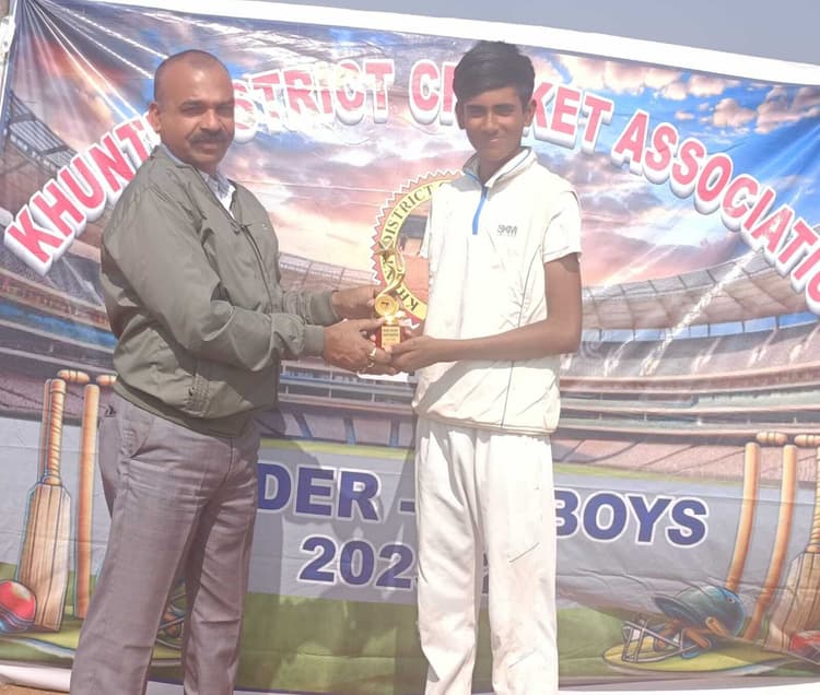 खूंटी. खूंटी जिला क्रिकेट एसोसिएशन के तत्वावधान में आयोजित अंडर 14 क्रिकेट प्रतियोगिता में बुधवार को सीएफसी और वीर बिरसा क्रिकेट एकेडमी के बीच मैच खेला गया. जिसमें सीएफसी की टीम सात विकेट से मैच जीती. पहले बल्लेबाजी करते हुए वीर बिरसा की टीम ने निर्धारित 30 ओवर में 72 रन पर ऑल आउट हो गई. जिसमें सर्वाधिक आयुष कुमार ने 15 रन बनाए. बाकी कोई भी बल्लेबाज दहाई का आंकड़ा पार नहीं कर पाया. गेंदबाजी में सीएफसी की ओर से अभिनीत कुमार पांडेय और प्रशांत कुमार मिश्रा ने तीन-तीन विकेट लिये, देव कुमार ने दो विकेट और तरुण कुमार सिंह ने एक विकेट लिया. लक्ष्य का पीछा करने उतरी सीएफसी की टीम 13 ओवर पांच बॉल में तीन विकेट के नुकसान पर 73 रन बना लिये. जिसमें सर्वाधिक तरुण कुमार सिंह ने 34 और आदित्य पासवान ने 15 रनों का योगदान दिया. गेंदबाजी में वीबीसीए की ओर से करण कुमार, अंकुश कुमार और स्वयंकृत ने एक-एक विकेट लिया. मैच का प्लेयर ऑफ द मैच प्रशांत कुमार मिश्रा को मिला. खूंटी जिला क्रिकेट एसोसिएशन के कार्यकारी अध्यक्ष कृष्ण मोहन कुमार ने उन्हें पुरस्कृत किया.