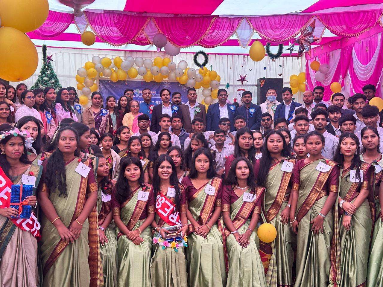 खूंटी. खूंटी के जमुवादाग स्थित निर्मला देवी ग्रुप ऑफ एजुकेशन में शनिवार को क्रिसमस समारोह सह नये विद्यार्थियों का स्वागत पर फ्रेशर डे का आयोजन किया गया. कार्यक्रम के मुख्य अतिथि सदर अस्पताल के उपाधीक्षक डॉ आनंद किशोर उरांव और पीएचसी प्रभारी पूनम मंडल उपस्थित थे. इस अवसर पर मुख्य अतिथि डॉ आनंद उरांव ने विद्यार्थियों को अनुशासन, नैतिक मूल्यों और मानव सेवा की भावना अपनाने का संदेश दिया. उन्होंने कहा कि शिक्षा केवल डिग्री प्राप्त करने का माध्यम नहीं, बल्कि समाज को सकारात्मक दिशा देने का सशक्त साधन है. संस्थान के निदेशक डॉ शैलेश ने कहा कि क्रिसमस गैदरिंग हमें भाईचारा और प्रेम का संदेश देता है. आपस में मिलजुल कर रहने की प्रेरणा इससे मिलती है. बच्चे संस्थान से डिग्री हासिल कर अपने भविष्य को उज्जवल बनाते हैं और अपने मां-बाप का नाम रोशन करते हैं. कार्यक्रम में संस्थान की छात्राओं ने कई सांस्कृतिक कार्यक्रम प्रस्तुत किया. जिसमें उन्होंने नृत्य, गीत और नाटक प्रस्तुत किया. इस अवसर पर संस्थान के नये विद्यार्थियों का स्वागत किया गया. समारोह में सभी ने एक-दूसरे के साथ प्रेम, शांति और सौहार्द के साथ रहने का संकल्प लिया. मौके पर संस्थान के शिक्षक-शिक्षिका और विद्यार्थी उपस्थित थे.