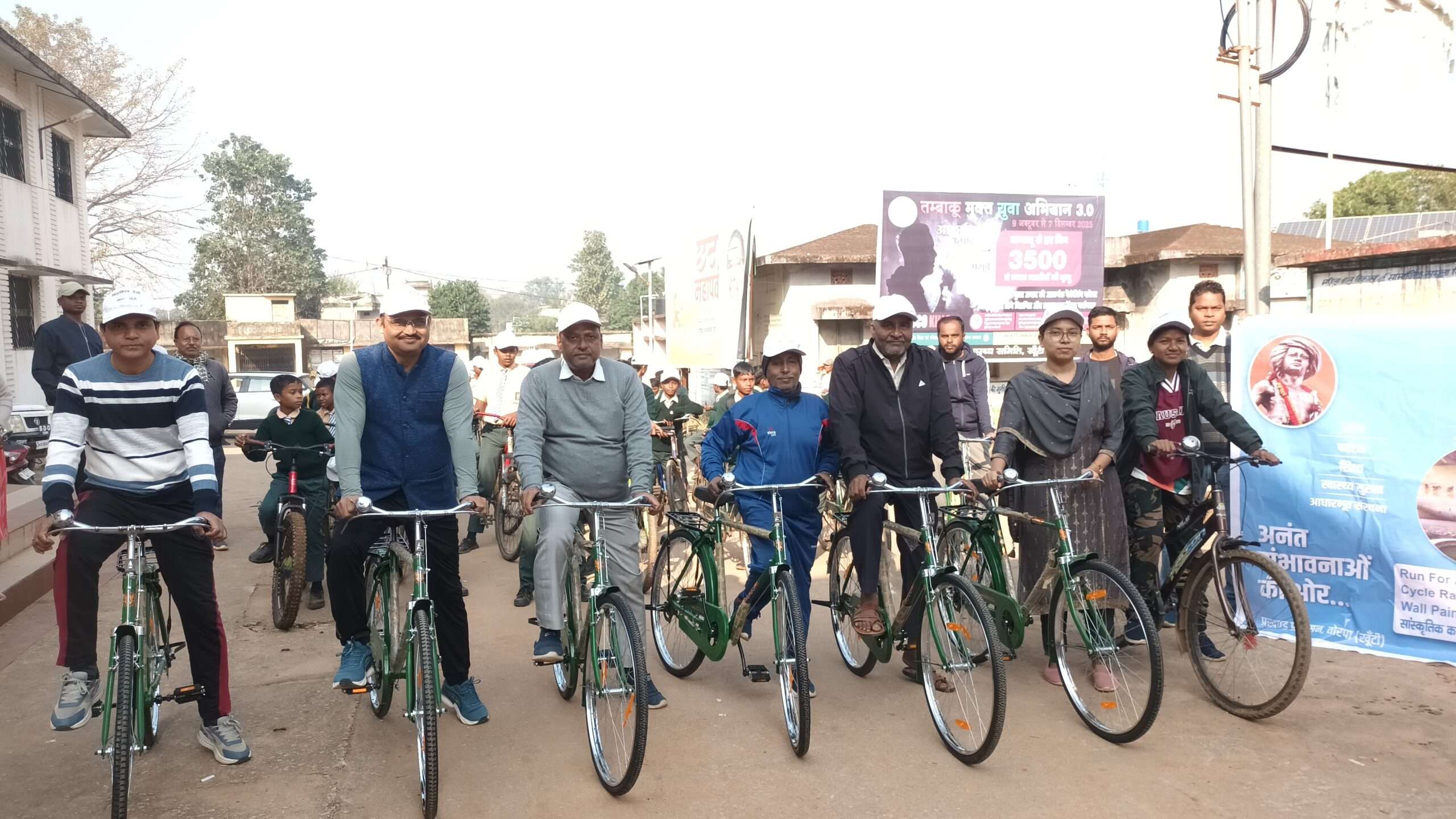 तोरपा. झारखंड राज्य स्थापना की 25वीं वर्षगांठ के उपलक्ष्य में बुधवार को तोरपा में साइकिल यात्रा निकाली गयी. इस दौरान पर्यटन को बढ़ावा देने का संकल्प लिया गया. प्रखंड परिसर से इस कार्यक्रम की शुरुआत की गयी. बीडीओ नवीन चंद्र झा, अंचलाधिकारी पूजा बिन्हा, बीपीओ नरेंद्र कुमार की अगुवाई में लोगों ने प्रखंड परिसर से, सड़क मार्ग से होते हुए हिल चौक स्थित भगवान बिरसा मुंडा की प्रतिमा स्थल तक साइकिल चलायी. इस अवसर पर अधिकारियों ने कहा कि युवा पीढ़ी में जागरूकता लाने और क्षेत्र के पर्यटन स्थल को बढ़ावा देने हेतु इस तरह के कार्यक्रम आयोजित किये जा रहे हैं. कार्यक्रम में मोनल आनंद, रेफरल अस्पताल के प्रभारी चिकित्स, बीएओ भुनेश्वर साहू, विजय गुप्ता आदि सहित बड़ी संख्या में प्रशासनिक अधिकारियों, प्रबुद्ध नागरिकों, शिक्षकों तथा विभिन्न स्कूलों के छात्र-छात्राओं ने भाग लिया.