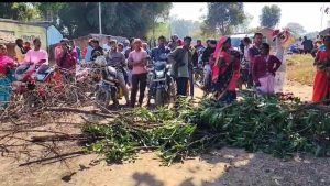 सड़क निर्माण कंपनी पर लापरवाही का आरोप, ग्रामीणों ने जाम की सड़क