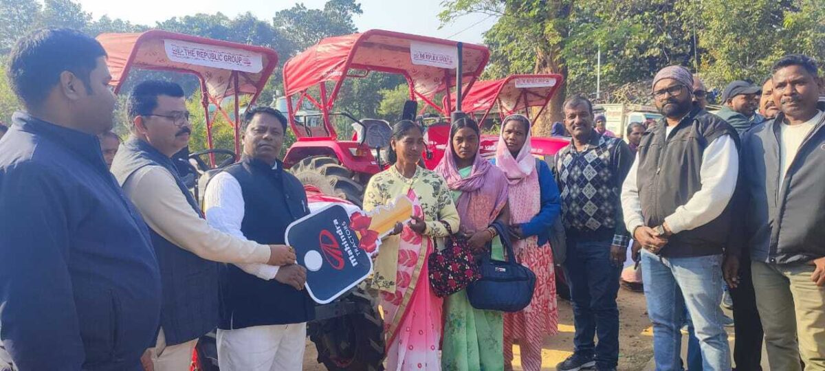 किसान समूह के बीच ट्रैक्टर का वितरण