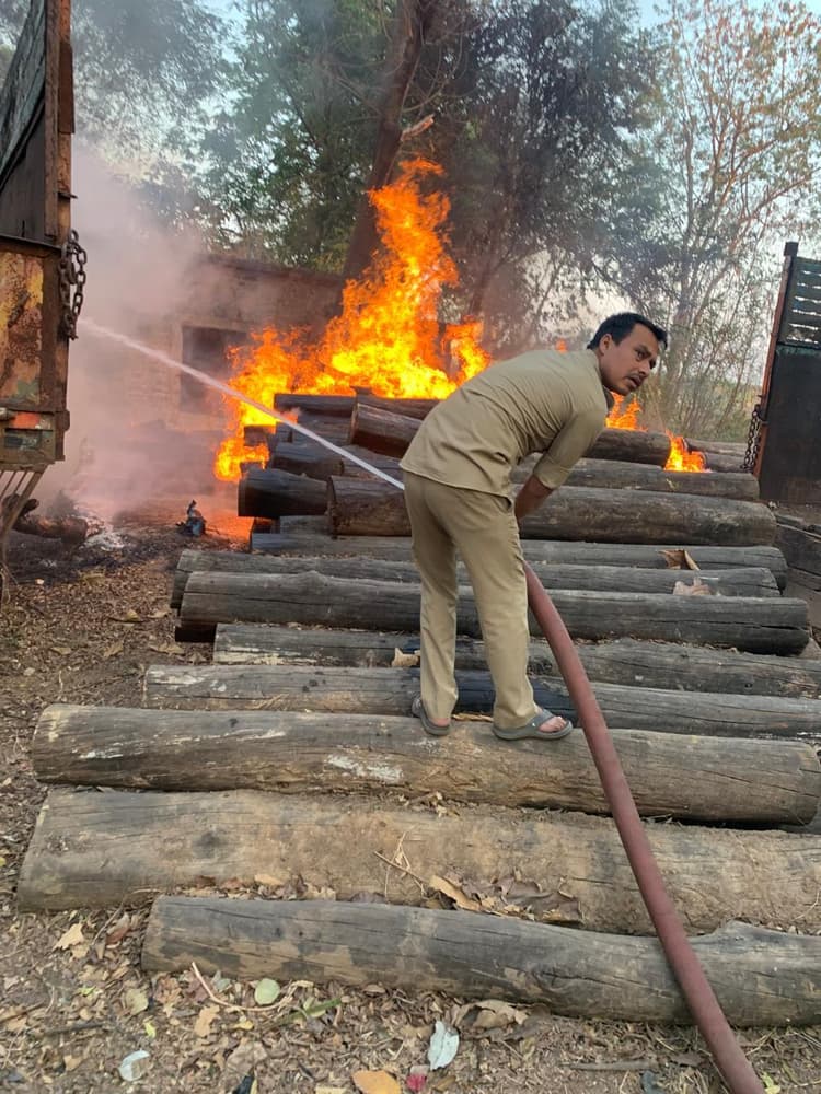 खूंटी वन प्रमंडल कार्यालय परिसर में आग लग गयी. आगलगी से परिसर में रखी लकड़ियां और कई वाहन जल गये.