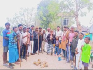 खूंटी. अड़की प्रखंड के सिरकाडीह में बुधवार को मकर संक्रांति के अवसर पर पारंपारिक फोदी खेल का आयोजन किया गया. खेल में शामिल खिलाड़ी लकड़ी के 10-15 गेंद को गांव के नीचे टोली से गांव के बीचो-बीच लेकर गये. जहां गेंद को दो टीमों के बीच खेला गया. इस दौरान गांव की महिलाओं ने खिलाड़ियों का पानी छिड़क कर स्वागत किया. खिलाड़ी फोदी खेलते हुये ग्राम प्रधान रोहित कुमार सिंह मुंडा के घर में फोदी को घुसा दिये. इसके बाद सभी खिलाड़ियों और ग्रामीणों का पैर धोया गया. वहीं ग्राम प्रधान और उनके परिवार ने खिलाड़ियों का स्वागत किया. सभी खिलाड़ियों को मिठाई और अन्य खाद्य पदार्थ दिये गये. इसके बाद आंगन में टुसू नाच का आयोजन किया गया. मौके पर प्रो देवनंदन सिंह मुंडा, त्रिवेणी मुंडा, राधा नाथ मुंडा, जंगल सिंह मुंडा, शत्रुधन पुराण, लाल लोहरा, महावीर स्वांसी, रामधन मिर्धा, जीतेंद्र मिर्धा, बाले मुंडा, नितई मुंडा, परेश मुंडा दिलीप मुंडा, काली मुंडा, जपुद मुंडा, मुकेश, सिबेशर, विजय, राजेन सहित अन्य उपस्थित थे.