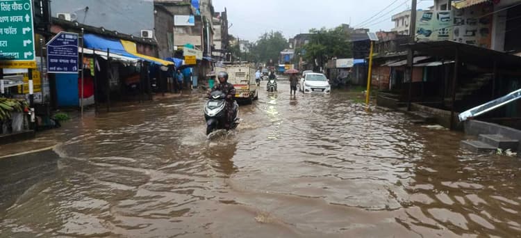 खूंटी. जिले में पिछले तीन दिनों से हो रही बारिश से लोगों का जीना मुहाल हो गया है. बुधवार को पूरी रात और गुरुवार की सुबह जोरदार हुई बारिश के कारण शहर के कई हिस्सों में जलभराव हो गया. शहर के भगत सिंह चौक के समीप डाक बंगला रोड तो पूरी तरह से नदी बन गयी थी. जिसके कारण आवागमन करने में लोगों को काफी परेशानी हुई. भगत सिंह चौक स्थित मंदिर में पूजा करने आये श्रद्धालुओं को भी गंदे पानी से होकर गुजरना पड़ा. वहीं डाक बंगला रोड में खड़े वाहन डूबे हुए नजर आ रहे थे. कई दुकान और घरों में भी बारिश का पानी घुस गया. हालांकि बारिश थमने के बाद पानी निकल गया. जिसके बाद लोगों को राहत महसूस हुई. बारिश के कारण शहर के अन्य हिस्सों में भी जलजमाव हो गया. वहीं कई जगहों पर कीचड़ भर गया. लगातार हो रही बारिश से लोग परेशान गये हैं.