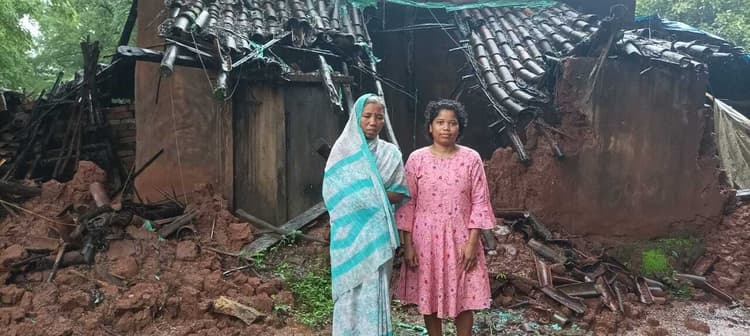 लगातार बारिश से गिरे घर