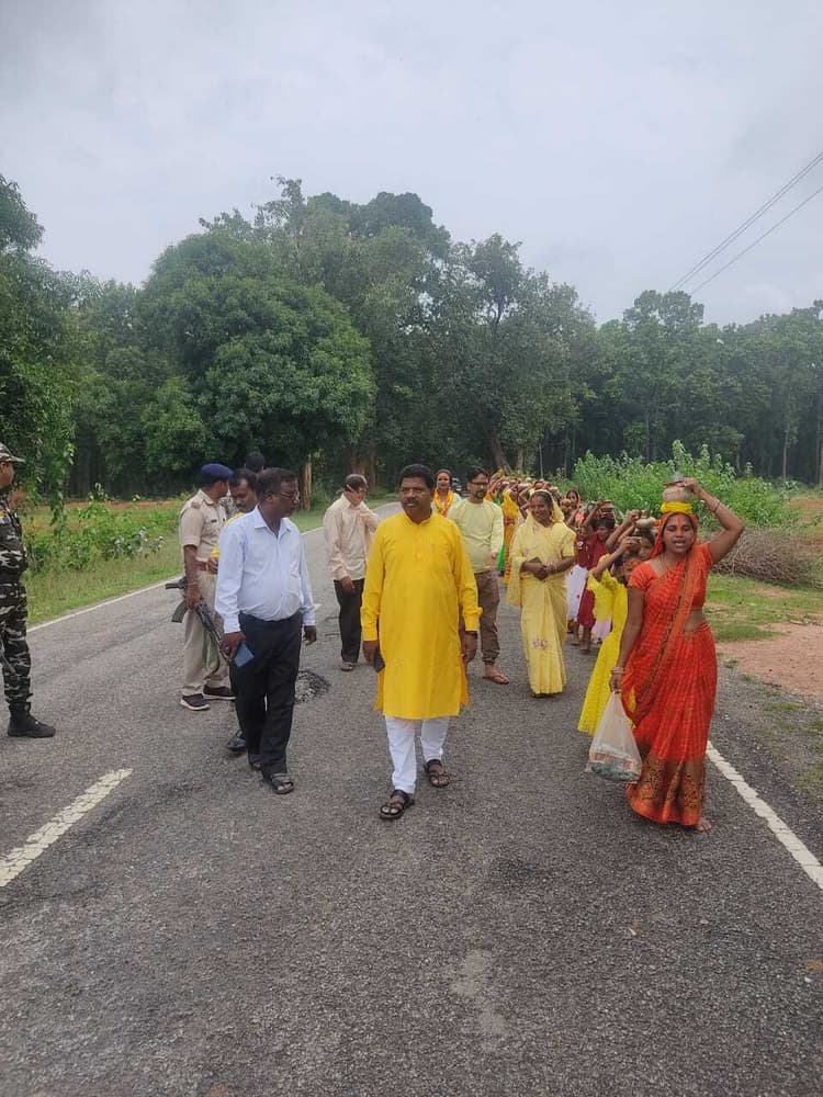 कर्रा. प्रखंड के डहकेला गांव में मंगलवार को वनवासी कल्याण केंद्र के तत्वावधान में कलश यात्रा निकाली गयी. इसमें सैकड़ों श्रद्धालुओं ने स्थानीय डोबघाट नदी तट से कलश में जल लेकर गांव का भ्रमण करते हुए ग्राम देवी पर जल अर्पित किया. मुख्य अतिथि तोरपा विधायक कोचे मुंडा शामिल ने ग्राम देवी में जल अर्पित की पूजा-अर्चना की. इस दौरान पूरा क्षेत्र बोलबम और जय श्री राम के जयकारों से गूंज उठा. इसके बाद ग्रामीणों के बीच सामूहिक रूप से प्रसाद वितरण किया गया. विधायक ने कहा कि हमें धीरे-धीरे अपनी परंपरा और संस्कृति से जुड़ना होगा. हम सभी को अपने सनातनी होने पर गर्व है और हम सभी की जिम्मेदारी है कि आनेवाली पीढ़ी तक अपनी संस्कृति को पहुंचाएं. विशेष रूप से इसमें हमारी नारी शक्ति का विशेष योगदान होना चाहिए. मौके पर पुरोहित निधेश्वर शर्मा, गोविंदपुर मंडल अध्यक्ष रामध्यान सिंह, रनिया मंडल अध्यक्ष निखिल कंडुलना, सीमा देवी, ममता कुमारी, गजेंद्र सिंह, रामलखन सिंह, रमेश गुप्ता, शिवकुमार केशरी, नीलांबर सिंह, विनय गुप्ता, शिवम कुमार, शंकर दास, संतोषी कुमारी सहित अन्य उपस्थित थे.