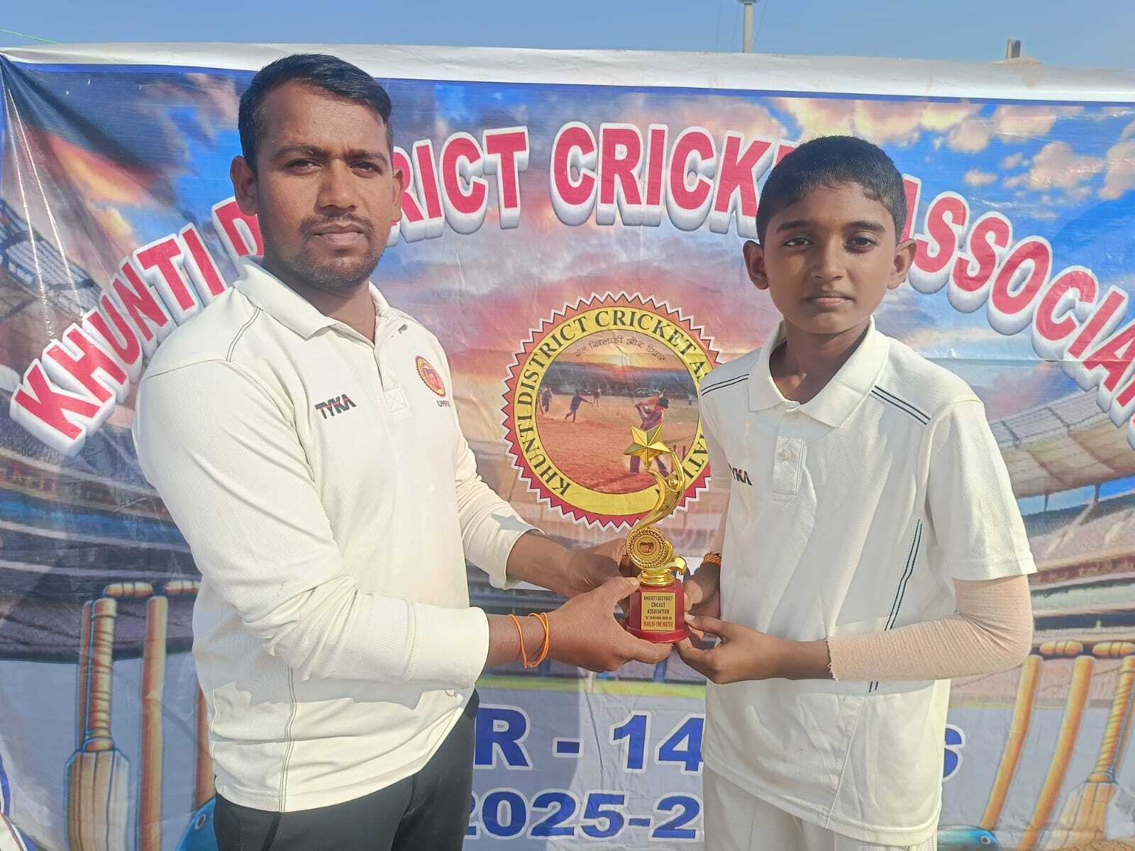 खूंटी जिला क्रिकेट एसोसिएशन के तत्वावधान में आयोजित बी डिवीजन क्रिकेट प्रतियोगिता में रविवार को पीपीसी और केसीए लिटिल स्टार के बीच मैच खेला गया. जिसमें केसीए लिटिल स्टार की टीम 73 रन से मैच जीत गयी. पहले बल्लेबाजी करते हुए केसीए लिटिल स्टार की टीम 35 ओवर में 10 विकेट के नुकसान पर 188 रन बनाये. जिसमें सर्वाधिक प्रतीक सहदेव ने 55 रन बनाये. अंकित कुमार ने 33, वेदांश आर्य ने 31, निहाल कुमार ने 25 रन का योगदान दिया. गेंदबाजी में पीपीसी की ओर से हर्षित कुमार गंजू, दिव्यांशु यादव, प्यारे पाहन ने दो-दो विकेट लिये. आर्यन शर्मा और आरव मिश्रा ने एक-एक विकेट लिये. लक्ष्य का पीछा करने उतरी पीपीसी की टीम 115 रन पर ही ऑलआउट हो गयी. जिसमें सर्वाधिक गौरव कुमार ने 41, आर्यन शर्मा और आरव मिश्रा में 1 -15 रन बनाये. गेंदबाजी में केसीए लिटिल स्टार की ओर से निहाल कुमार चार, वेदांश आर्य तीन, आदित्य मनीष दो और हिमांशु राज एक ने विकेट लिये. प्लेयर ऑफ द मैच का पुरस्कार वेदांश आर्य को दिया गया.बी डिवीजन क्रिकेट प्रतियोगिता : पीपीसी और केसीए लिटिल स्टार के बीच हुआ मैचB