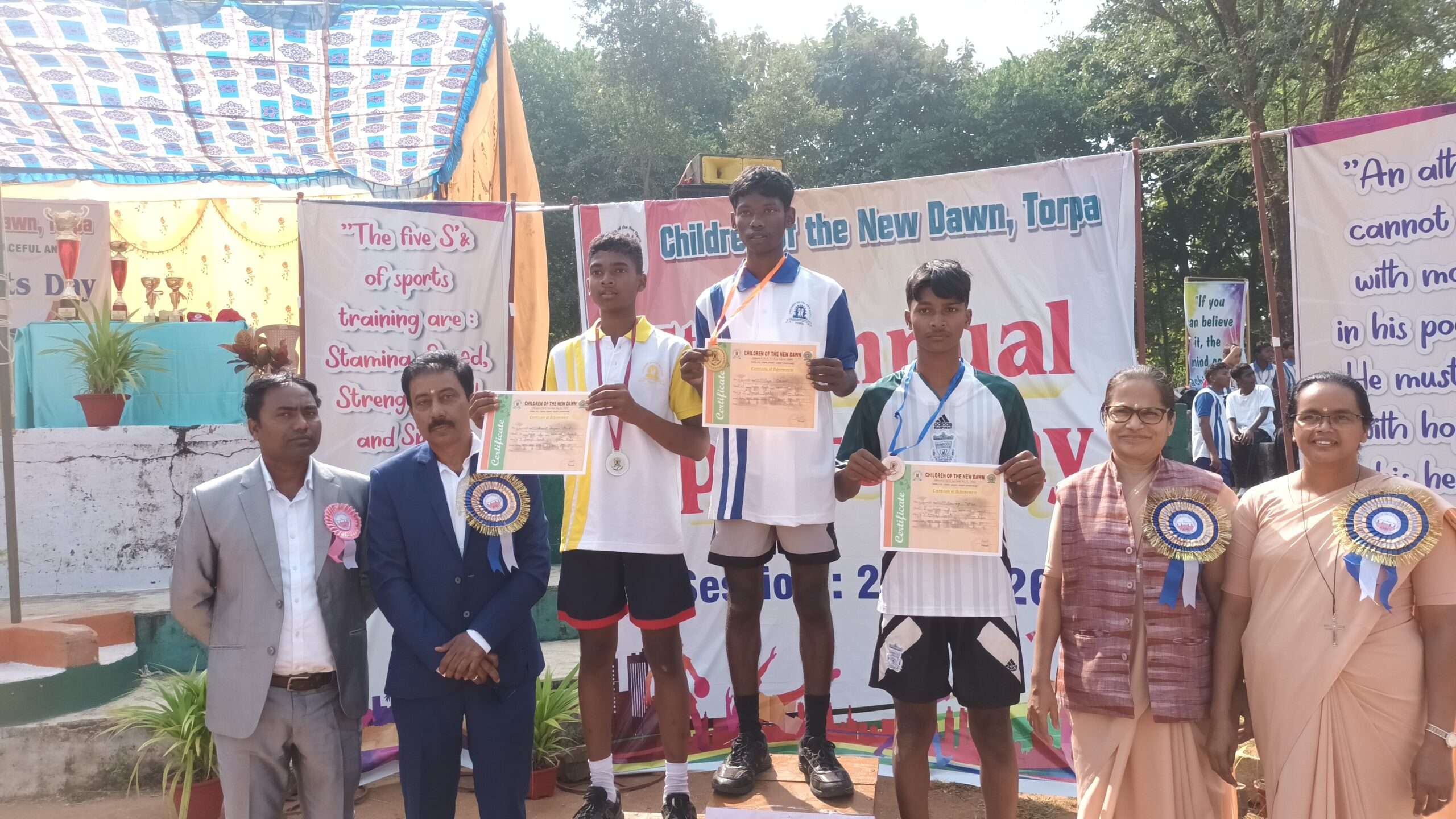 तोरपा. स्थानीय चिल्ड्रेन ऑफ द न्यू डॉन स्कूल, तोरपा में गुरुवार को वार्षिक खेलकूद प्रतियोगिता का आयोजन किया गया. प्रतियोगिता का उद्घाटन मुख्य अतिथि झारखंड सरकार के पूर्व संयुक्त सचिव विलसन भेंगरा तथा विशिष्ट अतिथि महिला विकास केंद्र की निदेशक सिस्टर मरियलेना ने किया. मुख्य अतिथि ने मशाल जला कर खिलाड़ियों को सौंपा तथा प्रतियोगिता शुरू करने की घोषणा की. इसके पूर्व विद्यार्थियों ने रंग-बिरंगे परिधानों में आकर्षक मार्च-पास्ट प्रस्तुत कर सभी का मन मोह लिया. बैंड दल ने बैंड डिस्प्ले कर उपस्थित दर्शकों का मन मोह लिया. खेलकूद प्रतियोगिता में कक्षा एक से 12वीं तक के विद्यार्थियों ने उत्साहपूर्वक भाग लिया. 100, 200, 400 तथा 800 मीटर, दौड़, लंबी कूद, ऊंची कूद, गोला फेंक आदि प्रतियोगिताएं आयोजित की गयी. मैदान में विद्यार्थियों का जोश और प्रतिस्पर्धा का माहौल देखने योग्य था. अभिभावक एवं शिक्षकगण बच्चों का उत्साहवर्धन करते रहे. मुख्य अतिथि विलसन भेंगरा ने विजेताओं को पदक व प्रमाण पत्र प्रदान किया. उन्होंने कहा कि प्रतियोगिता में जीत-हार मायने नहीं रखता, प्रतियोगिता में हिस्सा लेना ही महत्वपूर्ण है. प्रतियोगिता में जीत हार दोनों से सीख मिलती है. विशिष्ट अतिथि सिस्टर मरियलेना ने कहा कि खेल कूद हमें अनुशासन सिखाता है. उन्होंने भारतीय महिला टीम के विश्व कप जीतनेवाली खिलाड़ियों की तारीफ की. विद्यालय की प्राचार्य सिस्टर सुषमा ने कहा कि ऐसे आयोजन विद्यार्थियों के सर्वांगीण विकास में सहायक होते हैं. स्वागत भाषण मिस परवीना ने दिया. प्रतियोगिता चार हॉउस मटेर, सॉफी, टूसेन और स्टूअर्ट में बांट कर की गयी थी.
