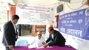 खूंटी.प्रधान जिला एवं सत्र न्यायाधीश सह डालसा अध्यक्ष रसिकेश कुमार के मार्गदर्शन में शनिवार को व्यवहार न्यायालय परिसर में मासिक लोक अदालत का आयोजन किया गया. लोक अदालत में कुल 34 मामलों का निष्पादन किया गया. जिसमें दो लाख 48 हजार 393 रुपये का सेटलमेंट किया गया. वहीं विशेष लोक अदालत में कुल 464 मामलों का निष्पादन किया गया तथा तीन लाख रुपये का सेटलमेंट किया गया. लोक अदालत में मामलों के निष्पादन के लिए कुल तीन बेंचों का गठन किया गया था. लोक अदालत में न्यायालय में लंबित मामलों तथा प्री-लिटिगेशन से संबंधित मामलों का निस्तारण किया गया. प्रथम बेंच में जिला जज तृतीय प्राची मिश्रा, पैनल अधिवक्ता मदन मोहन राम, सुमित कुमार कश्यप, द्वितीय बेंच में मुख्य न्यायिक दंडाधिकारी अर्जुन साव, न्यायिक पदाधिकारी प्रथम अमित आकाश सिंहा, पैनल अधिवक्ता ममता सिंह, तृतीय बैंच में स्थायी लोक अदालत के अध्यक्ष केके सिंह, सदस्य मधु चंदा कुमारी रजक, रूबी कुमारी और पीएलवी उपस्थित थे.