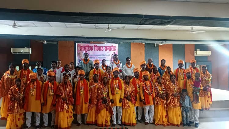 मूलवासी मजदूर संघ जिला समिति ने स्थानीय टाउन हॉल में सामूहिक विवाह का आयोजन किया. इस अवसर पर ढुकू परंपरा कर लिव इन रिलेशनशिप में रह रहे जोड़ों का सामूहिक विवाह कराया गया. सामूहिक विवाह में कुल 15 जोड़ों का पारंपरिक तरीके से विवाह संपन्न कराया गया. विवाह की विधियां पुरोहित जितेंद्र पांडेय, दुर्गा ओड़ेया, राम मुंडा, संजू ठाकुर सहित अन्य सहयोगियों ने पूरा किया. इस अवसर पर मुख्य अतिथि के रूप में सांसद कालीचरण मुंडा मौजूद थे. उन्होंने सभी जोड़ों को आशीर्वाद दिया. कार्यक्रम में संघ के अध्यक्ष संयूम अंसारी, हंस चैरिटेबल ट्रस्ट के निदेशक शिव प्रसाद चौबे, विजय स्वांसी, मार्शल बारला, कैसर खान, नरेश तिर्की, डेविट हमसोय, अरविंद महतो, गोपाल महतो, विनोद राम, मीनाक्षी टोपनो, कविलासी संगा, तस्मीना खातून, धर्मेंद्र मांझी, विक्रम महतो सहित अन्य उपस्थित थे.डिस्क्लेमर: यह प्रभात खबर समाचार पत्र की ऑटोमेटेड न्यूज फीड है. इसे प्रभात खबर डॉट कॉम की टीम ने संपादित नहीं किया है