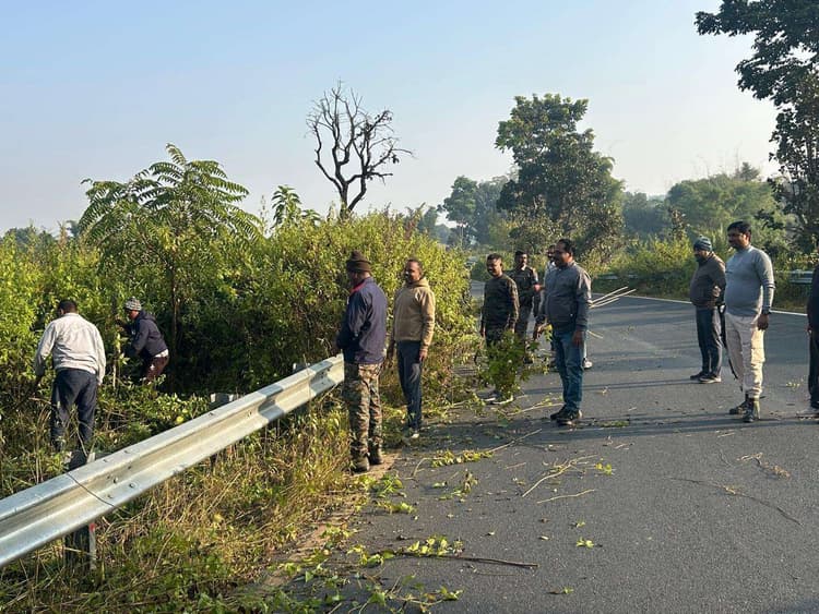 खूंटी. मुरहू थाना क्षेत्र में रविवार को नेशनल हाईवे 75ई के किनारे उगी झाड़ियों को मुरहू पुलिस के जवानों ने काट कर हटाया. सड़क किनारे उगी झाड़ियों के कारण सड़क की विजिविलिटी कम हो गयी थी. वहीं सड़क भी संकरी हो गयी थी. इससे सैकड़ों लोगों को आवगामन करने में परेशानी हो रही थी. खासकर सड़क के मोड़ में. इससे दुर्घटनाओं की भी आशंका बढ़ गयी थी. इसे देखते हुए मुरहू थाना प्रभारी नॉवेल गोडविन केरकेट्टा के नेतृत्व में मुरहू पुलिस के जवानों ने मुरहू से पंचघाघ जानेवाली सड़क के किनारे की झाड़ियों को साफ किया. इस काम में मुरहू के कई समाजसेवियों ने भी हिस्सा लिया. मुरहू थाना प्रभारी नॉवेल गोडविन ने बताया कि सामुदायिक पुलिसिंग के तहत यह अभियान चलाया गया है. आगे भी ऐसे अभियान चलाये जायेंगे. अभियान में सुशील सोय, बबलू खान सहित अन्य तथा मुरहू थाना के अधिकारी और जवान शामिल थे.