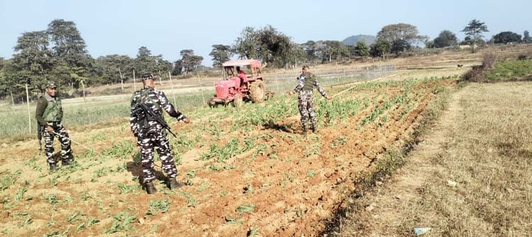 बुंडू अनुमंडल पुलिस प्रशासन अफीम खेती के विरोध में लगातार छापामारी अभियान चला रहा है. डीएसपी ओमप्रकाश के नेतृत्व में रविवार को अवैध रूप से की गयी अफीम की खेती के विरुद्ध छापेमारी की गयी. अनुमंडल क्षेत्र में कुल 31.5 एकड़ में लगी अफीम की फसल को नष्ट किया गया. छापेमारी के दौरान बुंडू थाना क्षेत्र अंतर्गत रेलाडीह स्थित रैयती व जंगली क्षेत्र में लगभग 13 एकड़ में, दशम फॉल थाना अंतर्गत हेसापीढ़ी जंगली क्षेत्र में लगभग दो एकड़ में, तमाड़ थाना अंतर्गत मानकीडीह ग्राम के जंगली क्षेत्र में लगभग 15 एकड़ में व सोनाहातू थाना अंतर्गत ग्राम नफड़ा नदी किनारे लगभग 1.5 एकड़ में अफीम की अवैध खेती को नष्ट किया गया. छापेमारी अभियान में डीएसपी ओम प्रकाश, थाना प्रभारी इंस्पेक्टर रामकुमार वर्मा, थाना प्रभारी सोनाहातू चंदन कुमार, थाना प्रभारी तमाड़ रोशन कुमार झा, दशम फॉल थानेदार प्रशांत गौरव, विकास चंद्र महतो, राहुल मेहता, संदीप कुमार मोदी, अनिल मोहाली, जयराम सिंह व पुलिस बल शामिल थे.डिस्क्लेमर: यह प्रभात खबर समाचार पत्र की ऑटोमेटेड न्यूज फीड है. इसे प्रभात खबर डॉट कॉम की टीम ने संपादित नहीं किया है