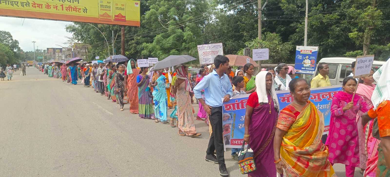 खूंटी. छत्तीसगढ़ के दुर्ग में दो सिस्टर को गिरफ्तार करने और तीन आदिवासी लड़कियों को प्रताड़ित किये जाने के विरोध में रविवार को खूंटी में ऑल चर्चेस कमेटी के द्वारा मौन जुलूस निकाला गया. जुलूस में खूंटी, मुरहू, सायको, मारंगहादा, अड़की, कर्रा, रनिया, मेरोमगुटू, तोरपा, रांची, जमशेदपुर, तमाड़ सहित अन्य स्थानों से बड़ी संख्या में लोग शामिल हुए. जुलूस की शुरुआत कचहरी मैदान में जीईएल चर्च के पादरी ओबेद सोरेन के द्वारा प्रार्थना कर की गयी. जुलूस कचहरी मैदान से निकल कर भगत सिंह चौक, डाक बंगला रोड, नेताजी चौक होते हुए लोयोला हॉस्टल मैदान में आकर समाप्त हुआ. इस दौरान सभी हाथों में बैनर और तख्ती लेकर दुर्ग की घटना का विरोध किया. सभा में अपने संबोधन में बिशप जोसेफ संगा ने कहा कि परमेश्वर ने हमें सेवा के लिए चुना है. इसलिए हम सभी को आपसी भाईचारा बना कर चलना है. जिससे हमारे जीवन में कामों के द्वारा शांति बनी रहे. उन्होंने कहा कि जुलूस का उद्देश्य शांतिपूर्ण तरीके से अपनी बातों को रखना है. जिससे ऐसी घटना आगे नहीं हो. सभा को बिरसा मुंडा, फ्रांसिस जेवियर बोदरा सहित अन्य लोगों ने संबोधित किया. धन्यवाद ज्ञापन विल्सन बोदरा ने किया. आयोजन में मुख्य रूप से आरसी चर्च के बिशप विनय कंडुलना, ऑल चर्चेस कमेटी के अध्यक्ष जेवियर बोदरा, सचिव अमर पूर्ति, बसंत आइंद, फादर हीरालाल, पादरी पतरस हुन्नी पूर्ति, पादरी जेम्स कंडुलना, पादरी मार्शलन तिड़ू, जोहन हेरेंज, मार्शला बारला, मार्टिन नाग, प्रसन्न कुमार देमता, प्रभुसहाय तोपनो सहित विभिन्न महिला समिति, युवा समिति और अन्य उपस्थित रहे.