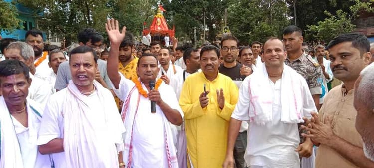 प्रतिनिधि, तोरपा जगन्नाथ मंदिर कोटेन्गसेरा, तोरपा में रथयात्रा धूमधाम से निकाली गयी. जय जगन्नाथ के उदघोष के बीच भगवान जगन्नाथ, भाई बलभद्र व बहन सुभद्रा के विग्रहों को रथ पर सवार कर श्रद्धालुओं ने रथ को खींच कर मौसीबाड़ी तक ले गये. यात्रा के दौरान रथ का रस्सी छूने व रथ खींचने के लिए श्रद्धालुओं में होड़ मची रही. शाम पांच बजे भगवान जगन्नाथ, भाई बलभद्र व बहन सुभद्रा के विग्रह को रथारुढ़ किया गया. इसके बाद रथयात्रा निकाली गयी. प्रशांत राय रथ के आगे झाड़ू लगाते चल रहे थे. मंदिर परिसर से रथयात्रा शुरू होकर, खासुआ टोली, कर्रा मोड़, मेन रोड होते हुए हिल चौक तक गयी. रथयात्रा पुनः उसी मार्ग से वापस लौटकर मौसीबाड़ी पहुंची. इसके पूर्व सुबह मंदिर में भगवान जगन्नाथ, भाई बलभद्र व बहन सुभद्रा की पूजा की गयी. भोग आरती के पश्चात प्रसाद वितरण किया गया. मंदिर परिसर में भंडारा का आयोजन भी किया गया. सैकड़ों श्रद्धालु मंदिर में भगवान के दर्शन करने पहुंचे. कीर्तन करती चली भक्तों की टोली : रथयात्रा के आगे-आगे भक्तों की टोली हरे कृष्णा, हरे कृष्णा, कृष्णा कृष्णा हरे हरे की धुन पर नाचते-झूमते चल रहे थे. मृदंग की थाप पर भक्तों के साथ रथयात्रा में शामिल श्रद्धालु भी झूम रहे थे. रथयात्रा के दौरान बारिश में भी रथ के के पहिये नहीं रुके. जैसे ही रथयात्रा निकली, थोड़ी दूर जाने के बाद ही बारिश शुरू हो गयी. परंतु भक्तों का जोश बारिश में भी कम नहीं हुआ. बारिश की बूंदों के बीच भक्त जय जगन्नाथ का उदघोष कर झूम रहे थे. रथयात्रा में शामिल हुए विधायक : विधायक कोचे मुंडा भी रथयात्रा में शामिल हुए. उन्होंने भगवान जगन्नाथ की पूजा की व क्षेत्र की खुशहाली की कामना की. रथयात्रा में संतोष जायसवाल, मंगल नीलय दास, वीरेंद्र यादव, राजेश यादव, मनोज यादव, नीलांबर यादव, अनुप, वीरेंद्र ओहदार, रामधन प्रभु, सेन प्रभु आदि शामिल थे. बड़ाइक टोली में पूजा : बड़ाइक टोली में भी भगवान जगन्नाथ, भाई बलभद्र व बहन सुभद्रा की पूजा की गयी. जगन्नाथ मंदिर का निर्माण होने के कारण विजय बड़ाइक के आवास पर भगवान जगन्नाथ, भाई बलभद्र व बहन सुभद्रा के विग्रह की पूजा की गयी. पूजा के पश्चात खीर प्रसाद का वितरण किया गया.