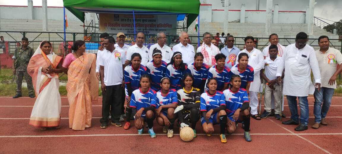 खूंटी. स्वतंत्रता दिवस के उपलक्ष्य पर आयोजित दो दिवसीय स्वर्गीय टी मुचिराय मुंडा स्मारक फुटबॉल प्रतियोगिता का शुक्रवार को समापन हुआ. प्रतियोगिता के बालिका वर्ग में फाइनल मैच सरना एफसी खूंटी और हार्दिक एफसी जगन्नाथपुर के बीच खेला गया. जिसमें सरना एफसी की टीम एक-शून्य गोल से विजयी रही. वहीं बालक वर्ग में जोटो ब्रदर्स बनाम विकास ब्रदर्स के बीच फाइनल मैच खेला गया. जिसमें दोनों ही टीमें बराबरी पर रहीं. जिसके बाद विजेता का निर्णय पेनाल्टी शूट आउट में किया गया. जिसमें विकास ब्रदर्स की टीम सात-छह गोल से विजयी हुई. समापन समारोह के मुख्य अतिथि खूंटी सांसद कालीचरण मुंडा और पूर्व विधायक नीलकंठ सिंह मुंडा ने विजेता और उपविजेता टीमों को पुरस्कृत किया. मौके पर मुख्य रूप से सांसद प्रतिनिधि पीटर मुंडू, विल्सन तोपनो, शशिकांत होरो उर्फ अनमोल, कांग्रेस जिला अध्यक्ष रवि मिश्रा, काशीनाथ महतो, अर्जुन पाहन, पीटर कौनगाडी, मदन मोहन मिश्रा, मनोहर नाग, सुनील नायक, मिथुन मुंडा, परमानंद कुमार, मानसिंह मुंडा, जगन्नाथ मुंडा, तुलसी तोपनो, नामजनसोय मुरमू, आनंद मासीह तिडू, आनंद कौनगाडी, राकेश सेठ, लालू सहित अन्य उपस्थित थे.
