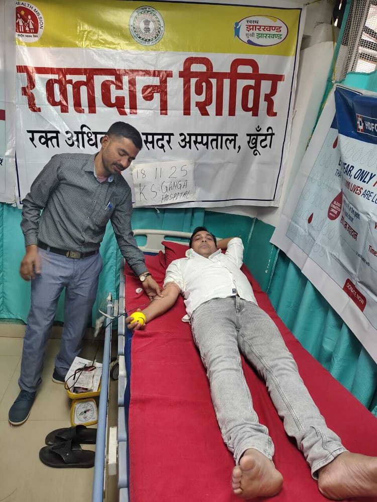 खूंटी. सदर अस्पताल के सहयोग से शहर के केएस गंगा हॉस्पिटल में मंगलवार को रक्तदान शिविर का आयोजन किया गया. शिविर की शुरुआत अस्पताल के निदेशक डॉ एके अंजनी ने स्वयं रक्तदान कर किया. वहीं उन्होंने अस्पताल के अन्य कर्मियों को भी रक्तदान करने के लिए प्रेरित किया. उन्होंने रक्तदान करने के फायदे के बारे में बताया. उन्होंने कहा कि रक्तदान महादान होता है. आपका एक यूनिट ब्लड लोगों की जिंदगी बचा सकती है. शिविर में एक महिला सहित कुल दस लोगों ने स्वेच्छा से रक्तदान किया. उन्हें प्रमाण पत्र प्रदान किया गया. मौके पर सदर अस्पताल रक्त अधिकोष के सुशांत कुमार, काउंसलर निशांत झा, बिंदिया कुमारी, श्रुति कुमारी, रेनु कुमारी सहित अन्य उपस्थित थे.