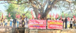 सोनाहातू/राहे. झारखंड राज्य किसान सभा के तत्वावधान में शहीद बिरसा मुंडा प्रतिमा स्थल नुरु राहे, कंताटोली, सोनाहातू, बरसालडीह में सम्मान पूर्वक शहीद बिरसा मुंडा जयंती की मनायी गयी एवं जल, जंगल, जमीन, खनिज संपदा, सीएनटी-एसपीटी एक्ट की रक्षा के लिए संघर्ष की शपथ ली. मुख्य वक्ता के रूप में वक्ता सुफल महतो ने कहा बिरसा के रास्ते ही झारखंड की खुशहाली, बेहतरी, भाईचारा के सपने को पूरा किया जा सकता है. इस अवसर पर झारखंड राज्य किसान कौंसिल सदस्य बिसंबर महतो, जिला कौंसिल सदस्य जयपाल सिंह मुंडा, शोभाराम महतो, पाडूराम मुंडा, रतन महतो, उमेश महतो, रंजीत मोदक, गगन सायं मुंडा, दिनेश महतो, मंगल मुंडा, शिवेश्वर अहिर, नेहरू लाल मुंडा, लोकल कमेटी सदस्य बिनोद साव आदि उपस्थित थे.