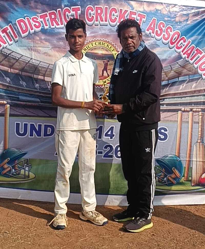 खूंटी. खूंटी जिला क्रिकेट एसोसिएशन के तत्वाधान में आयोजित अंडर 14 क्रिकेट प्रतियोगिता में मंगलवार को दो मैच खेले गए. पहला मैच जेसीए और सीएफसी बी के बीच खेला गया. जिसमें जेसीए की टीम 67 रनों से विजई हुई. पहले बल्लेबाजी करते हुए जेसीए की टीम 30 ओवर में पांच विकेट के नुकसान पर 143 रन बनाए. जिसमें सर्वाधिक प्रिंस राजपूत ने 41, सोम कटियार ने 28, अखंड प्रताप ने 19, अभिनव कुमार ने 10 रनों का योगदान दिया. गेंदबाजी में सीएफसी बी की ओर से आदित्य कारण मांझी ने दो, अनिकेत ने एक विकेट लिए. लक्ष्य का पीछा करने उतरी सीएफसी बी की टीम 76 रनों पर ऑल आउट हो गई. जिसमें सर्वाधिक आदित्य करण माझी ने 27, प्रशांत कुमार मिश्रा ने 19 रनों का योगदान दिया. बाकी कोई भी बल्लेबाज दहाई आंकड़ा को पार नहीं कर सका. गेंदबाजी में जेसीए की ओर से अमर पांडेय ने तीन, प्रिंस राजपूत, शाद आलम ने दो-दो विकेट लिये. अर्श आलम ने एक विकेट लिया. इस मैच का प्लेयर ऑफ द मैच प्रिंस राजपूत को दिया गया. दूसरा मैच सीएफसी ए और गुरुकुल के बीच खेला गया. जिसमें सीएफसी एक की टीम 88 रनों से मैच जीती. सीएफसी ए की टीम ने पहले बल्लेबाजी करते हुए 30 ओवर में आठ विकेट के नुकसान पर 262 रन बनाये. जिसमें सर्वाधिक सैफ अंसारी ने 76, अक्षित कुमार ने 39, सूरज गोप ने 34, नवदीप सिंह ने 27, आलोक कुमार ने 22 रनों का योगदान दिया. गेंदबाजी में गुरुकुल की ओर से रोशन ने तीन, सुजल ने दो और कृष्ण ने एक विकेट लिए. लक्ष्य का पीछा करने उतरी गुरुकुल की टीम 174 रन पर ऑल आउट हो गयी. जिसमें सर्वाधिक एमडी काशिफ इकबाल ने 60, अर्पित ने 21, आलोक ने 20, रोशन ने 17 और कौशल ने 16 रनों का योगदान दिया. गेंदबाजी में सीएफसी ए की ओर से आलोक कुमार ने तीन, अमन, ओम, सैफ, नवदीप, आनंद ने एक-एक विकेट लिए. इस मैच का प्लेयर ऑफ द मैच सैफ अंसारी को दिया गया.