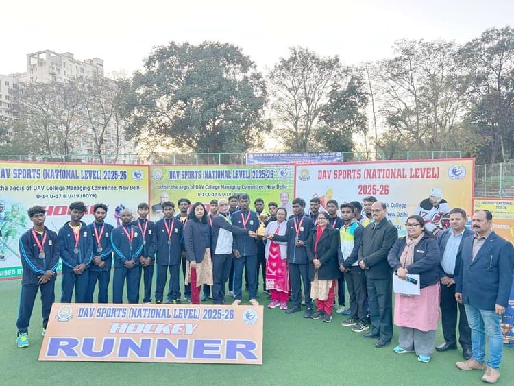 तमाड़. रांची में आयोजित डीएवी नेशनल स्पोर्ट्स 2026 में झारखंड की अंडर-17 बालक हॉकी टीम ने गौरवशाली प्रदर्शन करते हुए रनर-अप का खिताब अपने नाम किया है. बुधवार को खेले गए कड़े फाइनल मुकाबले में हरियाणा की टीम ने झारखंड को 3-1 से पराजित कर स्वर्ण पदक जीता. जबकि झारखंड को रजत पदक से संतोष करना पड़ा. इस राष्ट्रीय प्रतियोगिता में झारखंड की टीम का प्रतिनिधित्व डीएवी विद्यालय बुंडू और डीएवी खूंटी के खिलाड़ियों ने किया. पूरे टूर्नामेंट के दौरान झारखंड के खिलाड़ियों ने उत्कृष्ट खेल कौशल और टीम वर्क का परिचय दिया. फाइनल मैच में दोनों टीमों के बीच जबरदस्त संघर्ष देखने को मिला. लेकिन हरियाणा की टीम बढ़त बनाने में सफल रही. टीम की इस शानदार उपलब्धि पर डीएवी स्कूल बुंडू के प्राचार्य आकाश कुमार सिन्हा ने खिलाड़ियों की प्रशंसा करते हुए कहा कि राष्ट्रीय पटल पर झारखंड का यह प्रदर्शन भविष्य के खिलाड़ियों के लिए प्रेरणा बनेगा. उन्होंने इसे राज्य और स्कूल प्रबंधन के लिए गर्व का क्षण बताया.