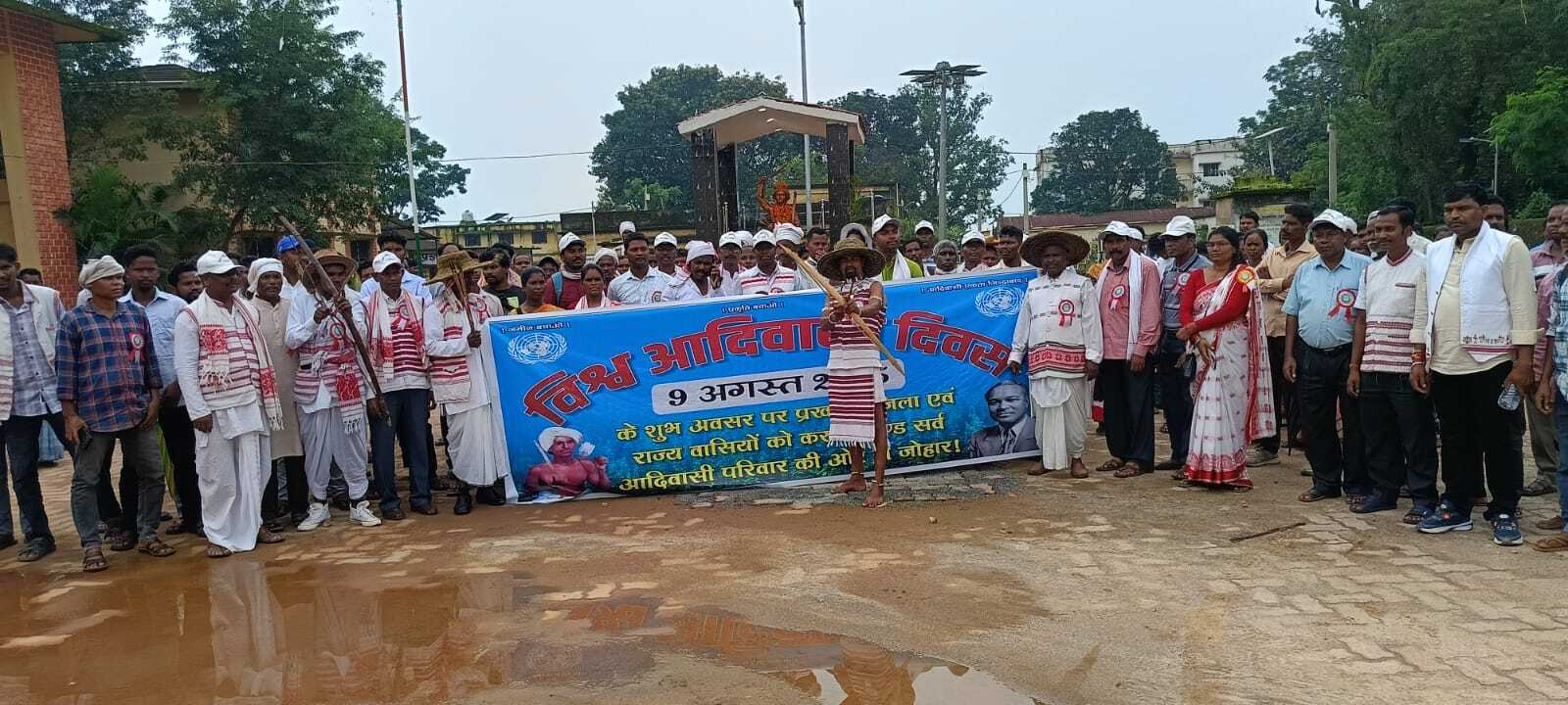 कर्रा. कर्रा प्रखंड के नगर भवन में शनिवार को सरना जागृति, विकास मंच कर्रा और संयुक्त पड़हा समिति कर्रा के द्वारा प्रखंड स्तरीय विश्व आदिवासी दिवस सादगी के साथ मनाया गया. इस अवसर पर भगवान बिरसा मुंडा, मारंग गोमके जयपाल सिंह मुंडा, दिशोम गुरु शिबू सोरेन, सिद्धू-कान्हू, गया मुंडा, तेलंगा खाड़िया, रामदयाल मुंडा और लड़ाऊ कच्छप की तस्वीर पर माल्यार्पण कर पुष्प अर्पित किया गया. पूर्व मुख्यमंत्री शिबू सोरेन को श्रद्धांजलि देते हुए नगर भवन से शांतिपूर्ण तरीके मौन जुलूस निकाला गया. जुलूस कर्रा मस्जिद चौक से थाना चौक कर्रा होते हुए ब्लॉक परिसर पहुंच कर भगवान बिरसा मुंडा की प्रतिमा पर माल्यार्पण किया गया. शिबू सोरेन की आत्मा की शांति के लिए दो मिनट का मौन रखा गया. जिसके बाद जुलूस फिर से नगर भवन कर्रा पहुंच कर सभा के रूप में परिवर्तित हो गया. जिसमें वक्ताओं ने विश्व आदिवासी दिवस, आदिवासी परम्परा, वेशभूषा, खान-पान संबंधी, झारखंड के महापुरुषों के जीवनी, झारखंड आंदोलन में एनइ होरो के योगदान, जल, जंगल, जमीन की लड़ाई, पत्थर खदान, बालू घाट, जमीन को बचाने के लिए लड़ी गयी लड़ाई पर विस्तृत जानकारी दी. कार्यक्रम का संचालन जयमंगल मुंडा और धन्यवाद ज्ञापन सनिका मुंडा ने किया. मौके पर आदिवासी धर्म अगुवा छुनकू मुंड़ा, जिला परिषद अध्यक्ष मसीह गुड़िया, सनिका मुंडा, शिबू होरो, सुनील होरो, सनिका संगा, रामसिंह भगत, चंदा पहान, एतवा हेरेंज, बमरजा मुखिया अनूप कुजूर, कर्रा मुखिया रश्मि लकड़ा, मेहा मुखिया अजय खलखो, कुदलुम मुखिया संदीप हेरेंज, फ्रेंकलिन धान, भीमसेन कैथा, बेनेदिक्त धान, गुडुवा हेरेंज, सफीरा कुजूर सहित अन्य उपस्थित थे.