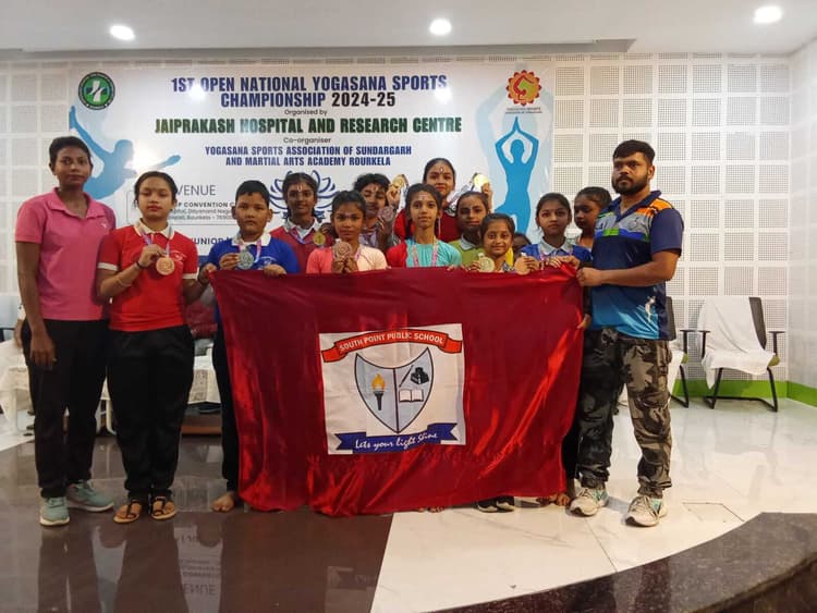 बुंडू. योगासन खेल संघ सुंदरगढ़ और मार्शल आर्ट अकादमी राउरकेला की ओर से 29 से 30 मार्च को राउरकेला, ओडिशा में योगा चैंपियनशिप का आयोजन किया गया. इसमें बुंडू के साउथ प्वाइंट पब्लिक स्कूल के विद्यार्थियों ने भाग लिया. रिम्मी राज कुमारी ने योगा में दो स्वर्ण पदक जीते. कलात्मक एकल पारंपरिक योगासन में काव्या ने एक स्वर्ण पदक और एक कांस्य पदक अपने नाम किया. कलात्मक एकल में आयुशी कुमारी ने स्वर्ण पदक, कलात्मक निर्देशन में आरोही कुशवाहा ने कांस्य पदक, कलात्मक युगल में सिया बिद व पूजा कुमारी ने कांस्य पदक जीते. कलाकार जोड़ी में श्रेया चटर्जी ने कांस्य पदक जीता. कलात्मक एकल में खुशी कुमारी ने रजत पदक, आन्वी अग्रवाल व तृषा चटर्जी ने कांस्य पदक, लयबद्ध जोड़ी में हर्षिता प्रसाद ने कांस्य पदक जीता. पारंपरिक योगासन में अंशुमान कुंडू ने रजत पदक जीता. कुल मिलाकर साउथ प्वाइंट पब्लिक स्कूल ने चार स्वर्ण, दो रजत, आठ कांस्य पदक अपने नाम किया.
