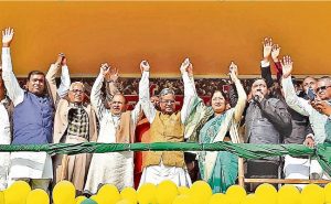 महासम्मेलन के जरिये झाविमो सुप्रीमो बाबूलाल मरांडी ने कोडरमा से लोकसभा चुनाव लड़ने का शंखनाद किया. सम्मेलन में राजद प्रदेश अध्यक्ष सह पूर्व मंत्री अन्नपूर्णा देवी भी शामिल हुई. बतौर मुख्य अतिथि शरद यादव ने भाजपा सरकार व प्रधानमंत्री नरेंद्र मोदी व राष्ट्रीय अध्यक्ष अमित शाह पर हमला बोला. कहा, आज जात-पात, बिरादरी, धर्म-संप्रदाय के नाम पर बांट कर लड़ाने का काम हो रहा है.