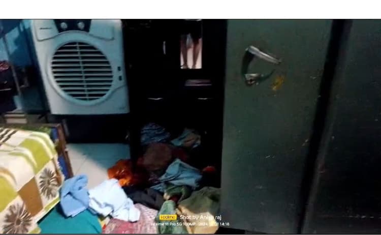 चंदवारा. तिलैया डैम ओपी अंतर्गत डीवीसी कॉलोनी निवासी सेवानिवृत्त शिक्षक बसंत पांडेय के बंद पड़े क्वार्टर नंबर एफ/बी में मंगलवार की रात लाखों रुपये के जेवरात की चोरी हो गयी. इस संबंध में शिवशंकर पांडेय ने तिलैया डैम ओपी में आवेदन दिया है. आवेदन में श्री पांडेय ने कहा है कि उनके मौसा बसंत पांडेय गत 20 मार्च से अपने छोटे बेटे के यहां विशाखापतनम गये हैं और उनका क्वार्टर बंद है़ सुबह उनके पड़ोसी शिक्षक अनिल कुमार ने उसके पिता अंगलाल पांडेय को जानकारी दी कि बंसत पांडेय के क्वार्टर का दरवाजा खुला है़ मौके पर पहुंचे श्री पांडेय ने गृहस्वामी बसंत पांडेय को फोन पर इसकी सूचना दी है़ कमरे के अंदर जाने पर पाया कि सोने का एक हार, सोने का चेन, सोने की अंगूठी, सोने की मंगटीका, सोने की चार कानबाली तथा आठ ग्राम के सोने के सिक्के की चोरी हुई है़ चोरी हुए आभूषण व सामान की कीमत सात-आठ लाख रुपये बतायी जा रही है़