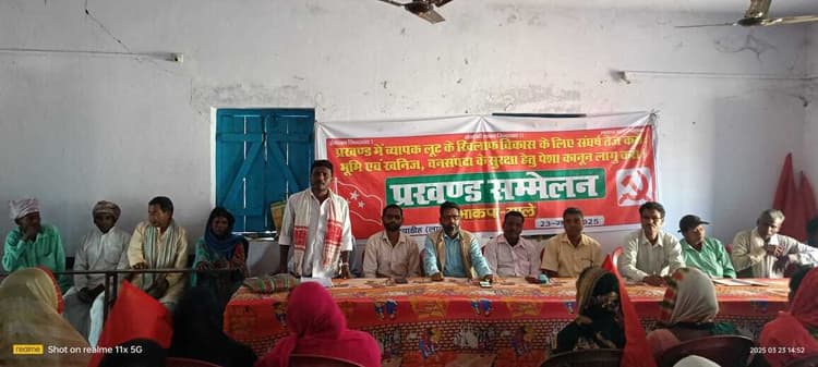 बरवाडीह. शहीद भगत सिंह के शहादत दिवस पर रविवार को भाकपा माले की ओर से संकल्प सभा सह प्रखंड सम्मेलन का आयोजन सामुदायिक भवन में किया गया. कार्यक्रम से पूर्व संकल्प मार्च निकाला गया. वहीं शहीद भगत सिंह, भीम राव आंबेडकर एवं भगवान बिरसा मुंडा की प्रतिमा पर माल्यार्पण कर उनके सपनों का झारखंड बनाने का संकल्प लिया गया. सम्मेलन में पूर्व सचिव कृष्णा सिंह ने पार्टी के समीक्षात्मक रिपोर्ट प्रस्तुत की. मुख्य अतिथि माले जिला सचिव बिरजू राम ने कहा की बरवाडीह से लेकर जिला के सभी प्रखंडों में प्रखंड सम्मेलन कर पार्टी को मजबूत किया जायेगा. पूरे जिले में 10 हजार नये सदस्य बनाने का लक्ष्य हैं. अप्रैल में होनेवाले राज्य सम्मेलन भव्य होगा. सम्मेलन के अंत में 15 सदस्सीय प्रखंड कमेटी का गठन किया गया. इसमें सचिव राजेंद्र सिंह खरवार एवं सह सचिव कृष्णा सिंह चेरो चुने गये. सदस्य के रूप में कमलेश सिंह, सुदर्शन राम, किशुन सिंह, लुरूक सिंह, घनश्याम राम, मंजू देवी, सुदामा राम, नंदलाल सिंह, फ्रांसिस गुड़िया, महेसी सिंह, मुंशी राम और रवींद्र प्रसाद को चुना गया.