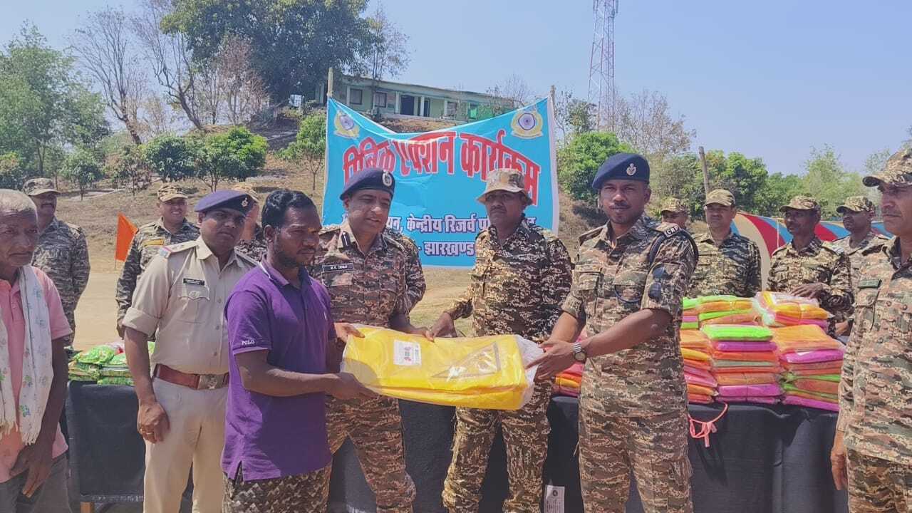 बरवाडीह. प्रखंड के नक्सल प्रभावित लात पंचायत के करमडीह स्थित बी-172 बटालियन कैंप परिसर में सोमवार को कमांडेंट नृपेंद्र कुमार सिंह के नेतृत्व में सिविक एक्शन प्रोग्राम का आयोजन किया गया. यहां कुलदीप कुमार द्वितीय कमान अधिकारी भी उपस्थित थे. कार्यक्रम में किसानों व ग्रामीणों के बीच उन्नत कृषि बीज, बच्चों को पठन-पाठन सामाग्री, पानी टंकी, सोलर लैंप व मच्छरदानी समेत अन्य सामग्री वितरित किये गये. कार्यक्रम के दौरान विभिन्न गावों से एकत्रित हुए लोगों को देशप्रेमी भावना की फिल्म दिखायी गयी. कमांडेंट श्री सिंह ने कहा की 172 बटालियन के बल का हमेशा से प्रयास रहा है कि क्षेत्र के आमजनों को लाभ पहुंचाने के उद्देश्य से कल्याणकारी कार्यक्रम चलाये जायें. कार्यक्रम में समबाय अधिकारी अक्षय मुंबईकर पांडुरंग (सहायक कमांडेंट), पंचायत की मुखिया ईश्वरी देवी, छिपादोहर थाना प्रभारी धीरज कुमार सिंह व ग्रामप्रधान बालेश्वर सिंह समेत काफी संख्या में लाेग उपस्थित थे.