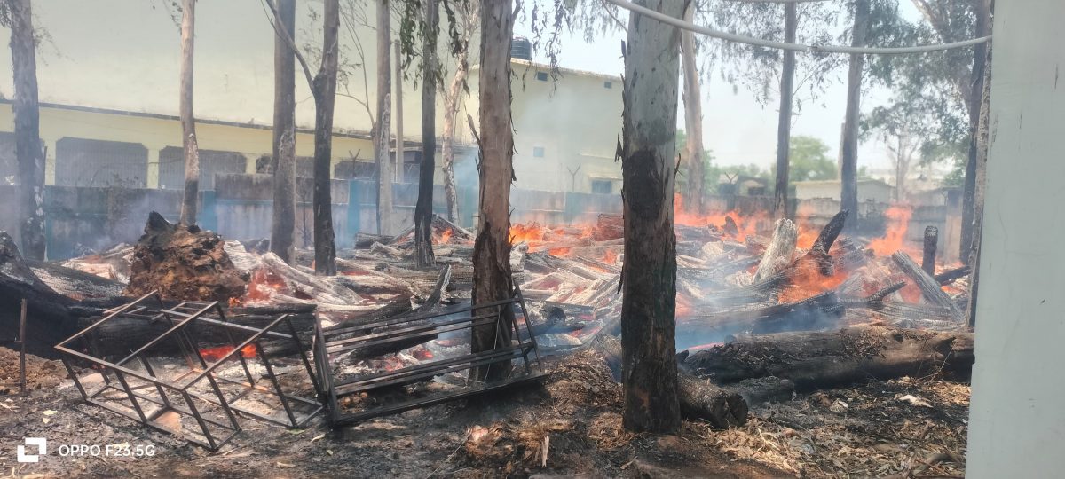 विद्यालय परिसर मे लगी आग, लकड़ियां जलकर राख