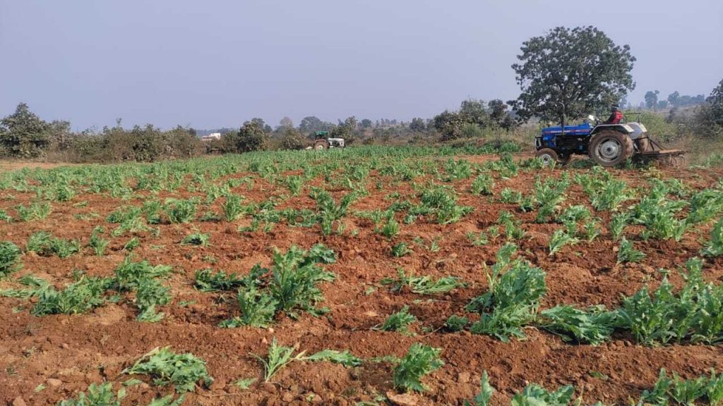 अवैध रूप से हो रही पोस्ते की खेती को ट्रैक्टर से रौंदा