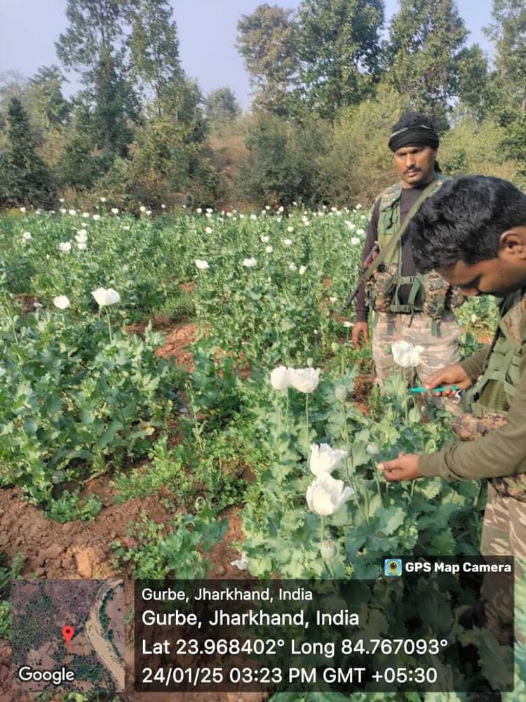 बारियातू पुलिस ने शुक्रवार को अफीम की खेती के खिलाफ बड़ी कार्रवाई की. बालूभांग पंचायत अंतर्गत गुरुवे दोमोहान स्थित मानत नदी के समीप गैरमजरुआ भूमि पर लगी पोस्ते की खेती को पुलिस ने नष्ट कर दिया. थाना प्रभारी देवेंद्र कुमार के अनुसार पुलिस अधीक्षक कुमार गौरव को गुप्त सूचना मिली थी कि मानत नदी के किनारे बड़े पैमाने पर पोस्ते की खेती हो रही है. सूचना के आधार पर बालूमाथ अनुमंडल पुलिस पदाधिकारी बिनोद रवानी के नेतृत्व पर एक विशेष टीम का गठन किया गया. टीम ने चिह्नित स्थानों पर अभियान चलाया और गैरमजरुआ भूमि में लगायी गयी पोस्ते की खेती को ट्रैक्टर से रौंदकर और लाठी-डंडों से पीटकर नष्ट कर दिया. थाना प्रभारी ने बताया कि इस अवैध खेती में संलिप्त कुछ लोगों की पहचान कर ली गयी है. अन्य की पहचान जारी है. तस्करों के खिलाफ प्राथमिकी दर्ज की जायेगी. अभियान में थाना प्रभारी के अलावा पुलिस के कई अधिकारी व जवान शामिल थे.डिस्क्लेमर: यह प्रभात खबर समाचार पत्र की ऑटोमेटेड न्यूज फीड है. इसे प्रभात खबर डॉट कॉम की टीम ने संपादित नहीं किया है