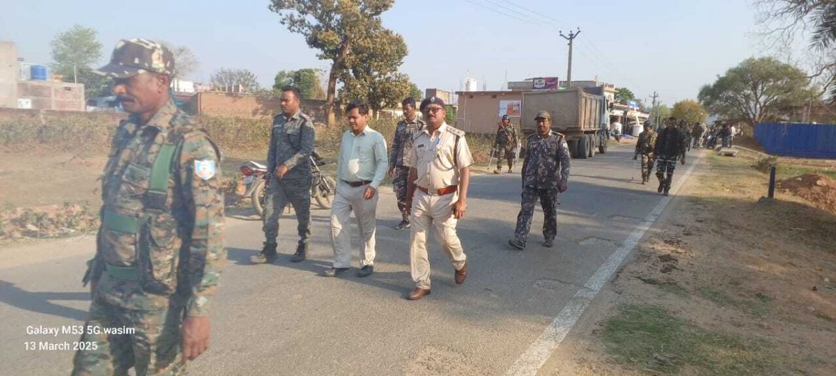 महुआडांड़ में पुलिस ने निकाला फ्लैग मार्च