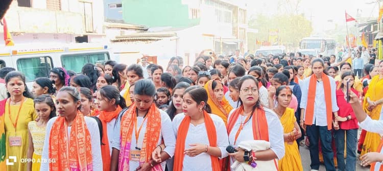 लातेहार. रामनवमी पूजा के अवसर पर जिला मुख्यालय में विश्व हिंदू परिषद, बजरंग दल और मातृ शक्ति दुर्गा वाहिनी के तत्वावधान में शोभायात्रा निकाली गयी. शोभायात्रा थाना चौक से प्रारंभ हुआ, जो मेन रोड समेत कई गली-मुहल्लों से गुजरा. जुलूस में शामिल महिलाएं व युवतियां जय श्रीराम, हम हिंदू जगाने आये हैं..एक ही नारा एक ही नाम जय श्रीराम के नारे लगा रही थीं. जुलूस में शामिल महिलाएं व युवतियां राष्ट्रीय ध्वज, त्रिशूल, भगवा झंडा, भगवा टोपी लगाये हुए थीं. शोभायात्रा में श्याम अग्रवाल, कंचन कुमारी, संजय तिवारी, शीला देवी, रानी देवी, पार्वती देवी, नितेश यादव, कल्याणी पांडेय, सोनम कुमारी, सुनीता देवी, पूनम देवी, शांति देवी, अलका कुमारी, अंजु गुप्ता, बसंती कुमारी, मीरा कुमारी, अनीता देवी, प्रिंयका कुमारी, रूबी कुमारी, प्रमोद प्रसाद, उमेश अग्रवाल, मनोज कुमार, जया कुमारी, प्रियंका कुमारी व सुरेंश प्रसाद समेत काफी संख्या में महिलाएं व युवतियां मौजूद थे.