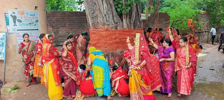 चंदवा/बालूमाथ. सुहागिनों ने सोमवार को पति की लंबी उम्र की कामना को लेकर वट वृक्ष की पूजा-अर्चना की. चंदवा में सुहागिनें सोलह श्रृंगार कर वट वृक्ष की पूजा-अर्चना की और अखंड सौभाग्य की कामना की. वट वृक्ष में कच्चा धागा लपेटकर मन्नतें मांगी. विधि विधान से पूजा कर सावित्री-सत्यवान की कथा सुनी. सुबह से ही पूजा को लेकर महिलाओं ने विशेष तैयारी की थी. नव विवाहिताओं में पूजा को लेकर अलग ही उमंग था. थाना टोली स्थित वट वृक्ष में सुगाहिनों की भारी भीड़ दिखी. पंडित योगेश उपाध्याय, पंडित गोपाल वैद्व समेत अन्य पुरोहितों ने सुहागिनों को पूजा करवाया. कथा सुनायी. पूजा के बाद पति के आर्शीवाद लेकर सुहागिनों ने व्रत तोड़ा. उधर, बालूमाथ प्रखंड में कन्या मवि परिसर, देवी मंडप बड़का बालूमाथ, टमटमटोला, दिवाकर नगर, शेरेगड़ा, बालू, बसिया, नगड़ा, झाबर समेत दर्जनों गांवों में सुहागिनों ने वट वृक्ष की पूजा कर पति की लंबी आयु की कामना की. पंडित कामेश्वर नाथ वैद्व, पंडित दीपक मिश्रा, पंडित देवांश पांडेय, पंडित अमरनाथ मिश्रा समेत अन्य ने पूजा संपन्न कराया.