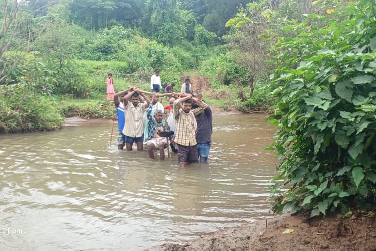 ऐसे में अगर कोई व्यक्ति बीमार पड़ जाए, तो डॉक्टर के पास लेकर जाना मुश्किल हो जाता है. खासकर बारिश के मौसम में. भीतरकोना गांव के 70 साल के प्रभुदास लकड़ा बीमार पड़ गए. शुक्रवार को उनको अस्पताल ले जाने की नौबत आ गई.