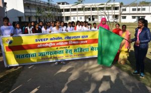 पालिका परिसर में प्रतिभागियों की सभा हुई. सभा में आसन लोकसभा चुनाव 2019 के निमित सभी उपस्थित लोगों को लोकतंत्र की गरिमा एवं प्रतिष्ठा बनाये रखने की शपथ दिलायी गयी. प्रतिभागियों में मधुसूदन लाल अग्रवाल महिला महाविद्यालय तथा उर्सूलाईन बीएड ट्रेनिंग कॉलेज की छात्राओं ने भाग लिया.