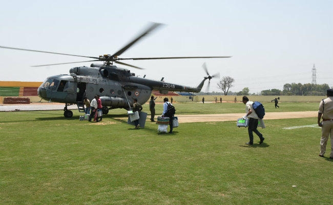 लोहरदगा में मतदान के लिए पोलिंग बूथ तक हेलीकॉप्टर से भेजे गये मतदानकर्मी