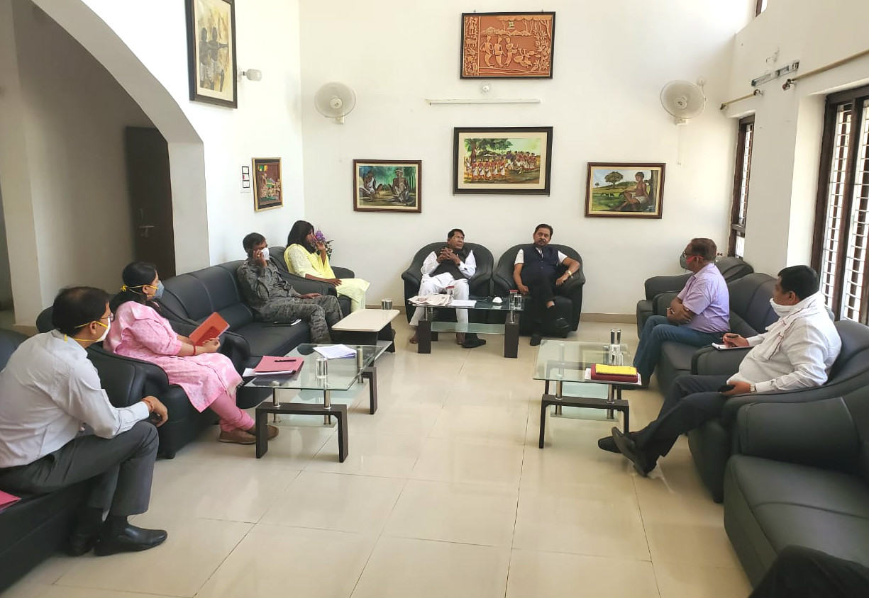 लोहरदगा : मंत्री सह लोहरदगा विधायक डॉ रामेश्वर उरांव और राज्यसभा सांसद धीरज प्रसाद साहू जिले के पदाधिकारियों के साथ बैठक कर कोरोनावायरस से उत्पन्न विकट परिस्थिति को संभालने के लिए संबंधित क्षेत्र में चल रही विभिन्न योजनाओं और कार्य प्रणालियों की विस्तृत जानकारी ली. साथ ही ग्रामीण क्षेत्रों में लोगों को अनाज की कमी ना हो, लोगों को भोजन की असुविधा ना हो इसका भी निर्देश दिया गया.