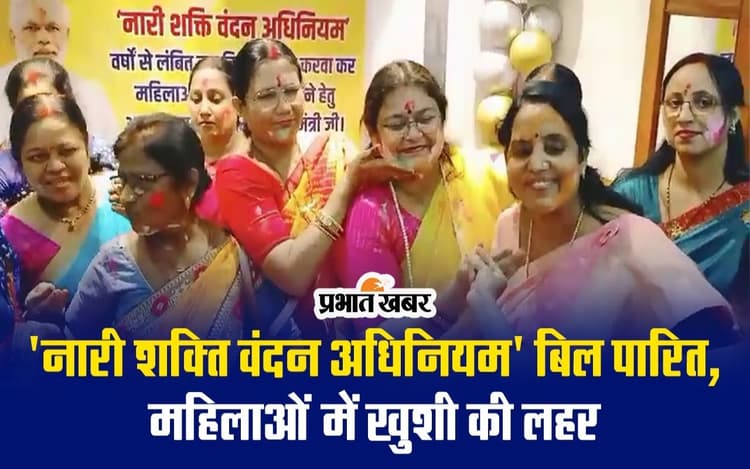'नारी शक्ति वंदन अधिनियम' बिल लोकसभा व राज्यसभा में भारी मतों से पारित होने पर महिलाओं में खुशी का माहौल. बता दें कि महिला आरक्षण बिल के प्रावधानों के अनुसार लोकसभा की 543 सीट में से 181 अब महिलाओं के लिए आरक्षित होगी.