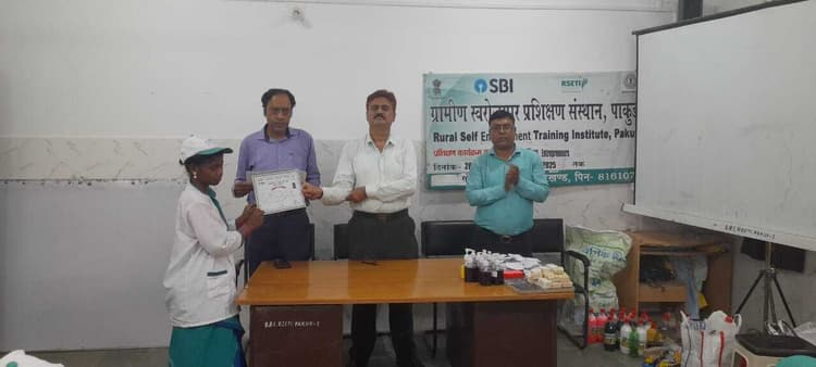 पाकुड़. सोनाजोड़ी स्थित भारतीय स्टेट बैंक ग्रामीण स्वरोजगार प्रशिक्षण संस्थान में सोमवार को जेएसएलपीएस सखी मंडल की दीदियों का 13 दिवसीय उद्यमिता विकास कार्यक्रम संपन्न हुआ. सखी मंडल की दीदियों को सर्फ, साबुन निर्माण का प्रशिक्षण मिला. प्रशिक्षण प्राप्त 31 प्रशिक्षुओं को आरसेटी निदेशक राजेश कुमार मिश्रा व वरिष्ठ संकाय अमित कुमार बर्धन ने संयुक्त रूप से प्रमाण-पत्र दिए. प्रशिक्षण प्राप्त महिलाओं से निदेशक श्री मिश्रा ने प्रशिक्षण का लाभ उठाकर व्यवसाय शुरू करने की अपील की. उन्होंने कहा कि जीवन की मूलभूत आवश्यकताओं को पूरा करने के लिए आर्थिक रूप से समृद्धि होना जरूरी है. बैंक से यथासंभव ऋण उपलब्ध कराने की बात कही. वहीं आरसेटी के वरिष्ठ संकाय अमित कुमार वर्धन ने सर्फ, साबुन, फिनायल, डिश वाश, फेस वाश, हबल शैंपू, टॉयलेट क्लीनर आदि निर्माण के साथ-साथ प्रोजेक्ट रिपोर्ट, बैंकिंग, बीमा, आदि से संबंधित जानकारी दी. कहा कि वर्तमान समय में महिलाओं को आर्थिक सशक्तिकरण बनाने के लिए आरसेटी की ओर से अनेकों कार्यक्रम चलाए जा रहे हैं. प्रशिक्षुओं को अगले दो सालों तक फॉलोअप किया जाएगा, ताकि उनके आत्मनिर्भर बनने में होने वाली समस्याओं का निराकरण हो सके. मौके पर अरुण नाथ तिवारी, मोहम्मद आलम खान, बापी दास, शिबू कुनाई, मोतीलाल साहा समेत अन्य मौजूद थे.
