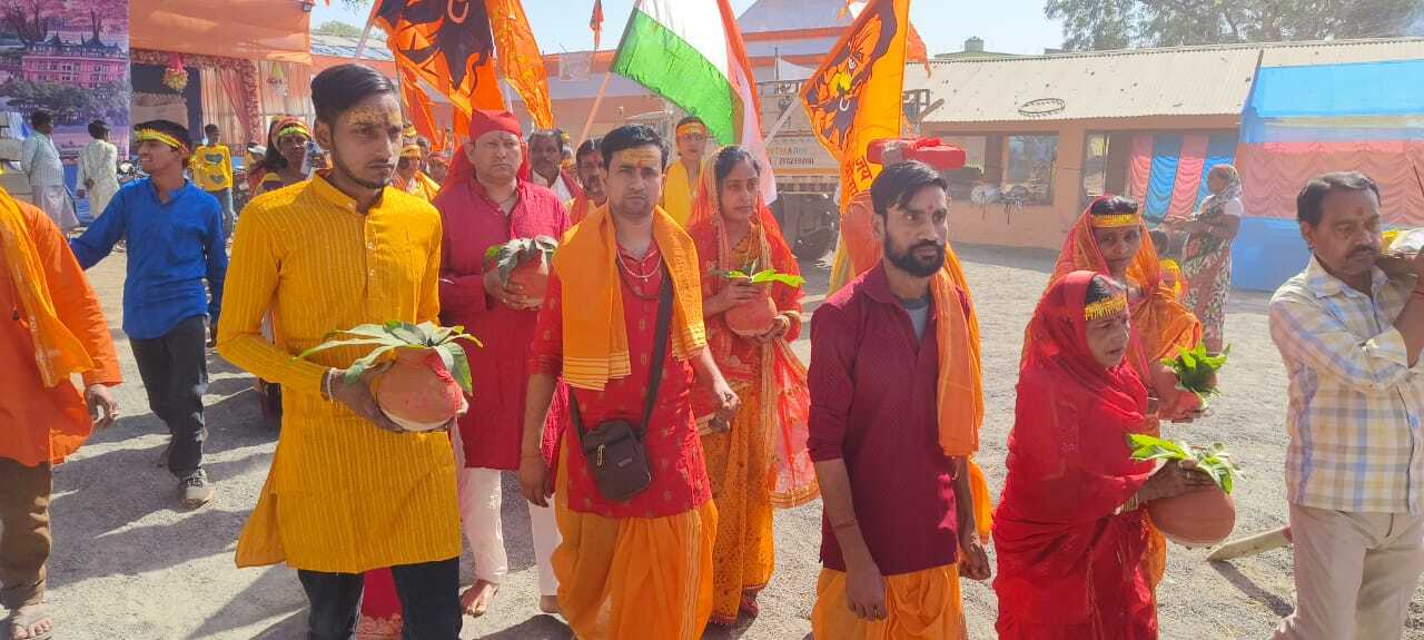 हिरणपुर. रामनवमी और चैती दुर्गा नवरात्रि के उपलक्ष्य में आयोजित सात दिवसीय राम कथा के शुभारंभ को लेकर रविवार को भव्य कलश यात्रा निकाली गई, जिसमें सैकड़ों की संख्या में कुंवारी कन्याओं, महिलाओं, पुरुषों एवं बच्चों ने हिस्सा लिया. कलश यात्रा मवेशी हाट स्थित बजरंगबली मंदिर से निकलकर रविंद्रनाथ चौक, सुंदरपुर होते हुए स्वर्गीय विभूति भूषण तालाब पहुंची. वहां मुख्य यजमान लक्ष्मण गुप्ता एवं उनकी धर्मपत्नी तथा सहदेव लाल मंडल एवं उनकी धर्मपत्नी ने विधिवत पूजा-अर्चना एवं मंत्रोच्चारण के साथ कलश में जल भरा. इसके बाद पुनः कलश यात्रा बजरंगबली मंदिर पहुंची. इस दौरान “जय श्री राम ” और “जय माता दी ” के जयघोष से पूरा वातावरण भक्तिमय हो गया. इसके बाद वासंतिक नवरात्र की प्रथम पूजा मां शैलपुत्री की आराधना पंडित सुजय पांडे ने मंत्रोच्चारण के साथ मुख्य यजमान से करवायी. शाम छह बजे से राम कथावाचक आचार्य श्री रविशंकर जी के मुखारविंद से लगातार सात दिनों तक राम कथा का आयोजन किया जाएगा. वहीं, विधि-व्यवस्था बनाए रखने के लिए बीडीओ टुडू दिलीप और सीओ मनोज कुमार भी कलश यात्रा में उपस्थित रहे. मौके पर कमिटी के अध्यक्ष श्याम सुन्दर भगत, उपाध्यक्ष बिपिन कुमार, सचिव विकास दास,उज्वल साहा, अमन साह, विशाल आर्य, विनय भगत, चन्दन दत्ता, अजय भगत,आदि मौजूद रहें.