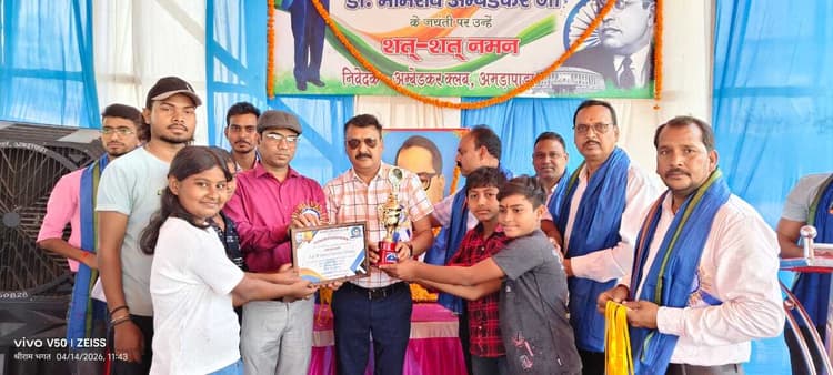 प्रतिनिधि, अमड़ापाड़ा. प्रखंड के पोखरिया चौक के समीप आंबेडकर क्लब के तत्वावधान में बाबा साहेब डॉ. भीमराव अंबेडकर की 135वीं जयंती धूमधाम से मनायी गयी. मुख्य अतिथि बीडीओ प्रमोद कुमार गुप्ता, विशिष्ट अतिथि सीओ औसफ अहमद खां और थाना प्रभारी अनूप रोशन भेंगरा ने बाबा साहेब के चित्र पर पुष्प अर्पित कर श्रद्धांजलि दी. इस अवसर पर विभिन्न विद्यालयों और कोचिंग संस्थानों के छात्र-छात्राओं के बीच क्विज प्रतियोगिता आयोजित हुई. जूनियर ग्रुप में गुरुकुल कोचिंग सेंटर प्रथम, सनराइज एकेडमी द्वितीय और प्रजापति ट्यूशन सेंटर तृतीय स्थान पर रहे. सीनियर ग्रुप में सिद्धि एकेडमी प्रथम, सनराइज एकेडमी द्वितीय और प्रिपेरेटरी सेंटर चिल्ड्रेंस एकेडमी तृतीय स्थान पर रही. विजेता प्रतिभागियों को बीडीओ और सीओ ने कप, मेडल और प्रशस्ति पत्र देकर सम्मानित किया. कार्यक्रम के दौरान वक्ताओं ने बाबा साहेब के विचारों और उनके योगदान पर प्रकाश डालते हुए समाज को शिक्षा, समानता और संविधान के मार्ग पर चलने का संदेश दिया. इसी क्रम में प्रिपेरेटरी सेंटर चिल्ड्रेंस एकेडमी में भी श्रद्धासुमन अर्पित किए गए. बाद में प्रखंड मुख्यालय स्थित बाबा साहेब की आदमकद प्रतिमा पर माल्यार्पण किया गया और सामुदायिक स्वास्थ्य केंद्र में मरीजों के बीच फल वितरण कर सेवा कार्य किया गया. मौके पर क्लब अध्यक्ष संजय रजक, सचिव संजय दास, संतोष रजक, निखिल कुमार, मो. जावेद, बाबूचंद मिर्धा, विनोद दास आदि थे.
