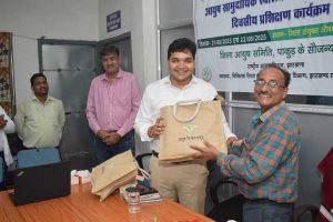 स्वास्थ्य पदाधिकारियों के बीच एप्रन व आयुष किट वितरित